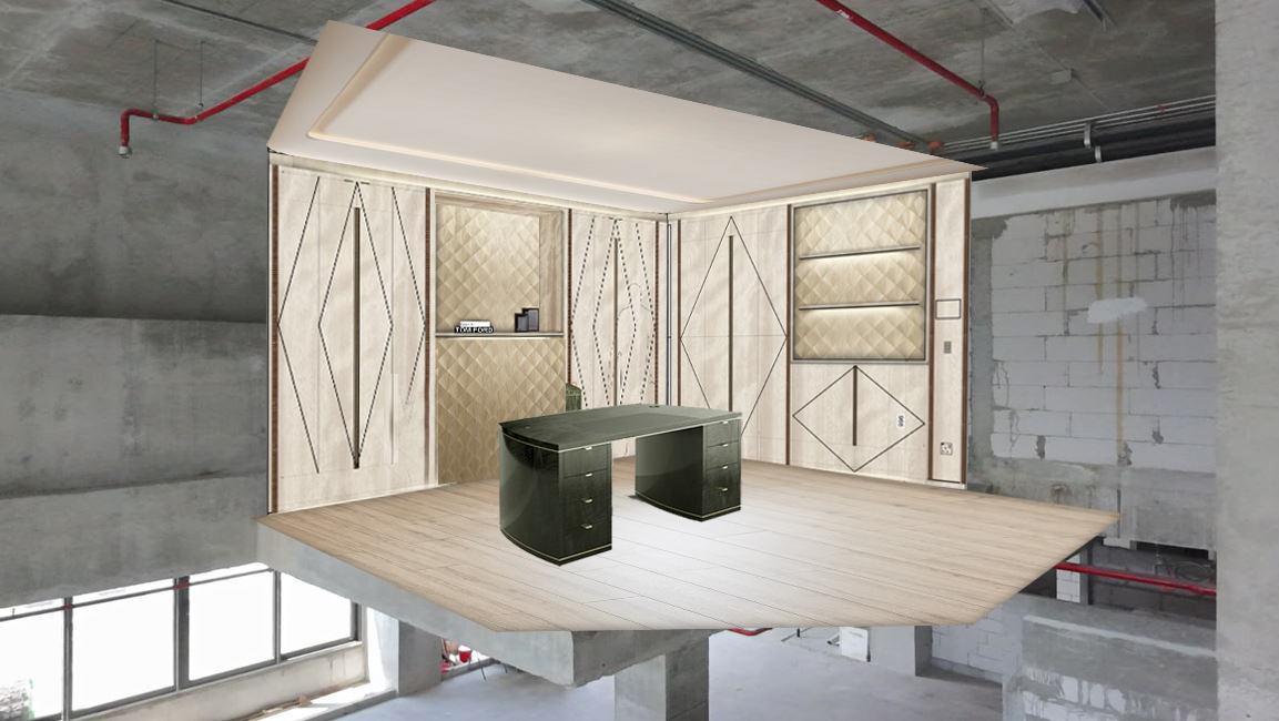 please make this visual look more realistic with mood lighting and no black lines to wardrobe doors make the veneer lighter colour make it daylight