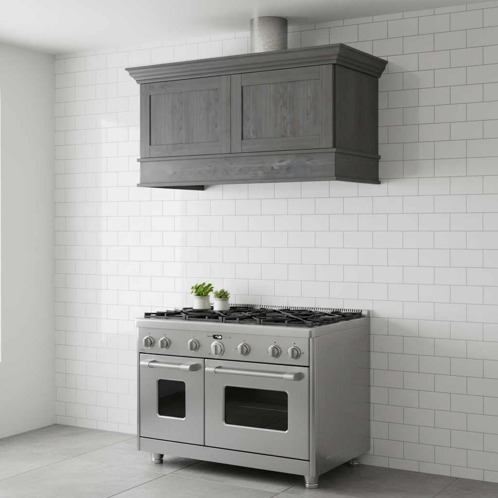make this built in hood look realistic in a kitchen make it freestanding on a wall by itself make it painted white