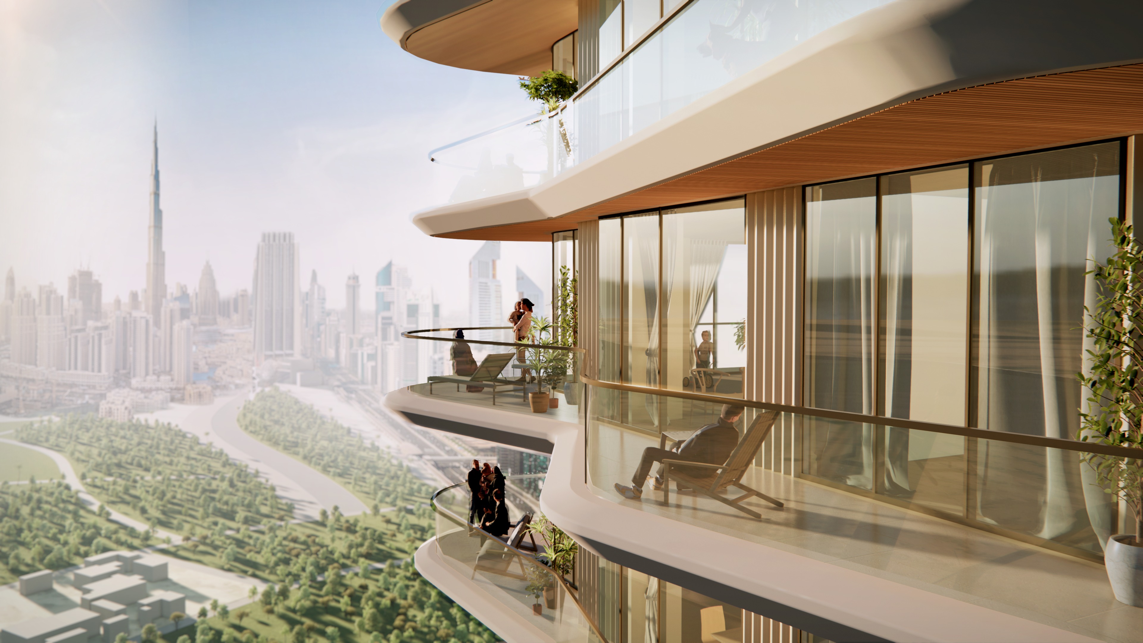 rerender this building closeup and make it look like a professional exterior rendering enhance the textures and lighting so it looks like a high end residential complex in dubai keep the same colors and tones