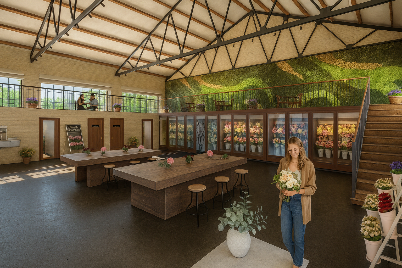 only remove the woman in the front and do not touch add or change anything else