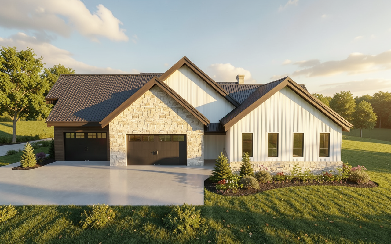 generate an image based on the uploaded photo keeping the existing mass shape position layout and camera angle exactly the same create a sports center that includes an indoor gym and an indoor swimming pool do not modify anything else