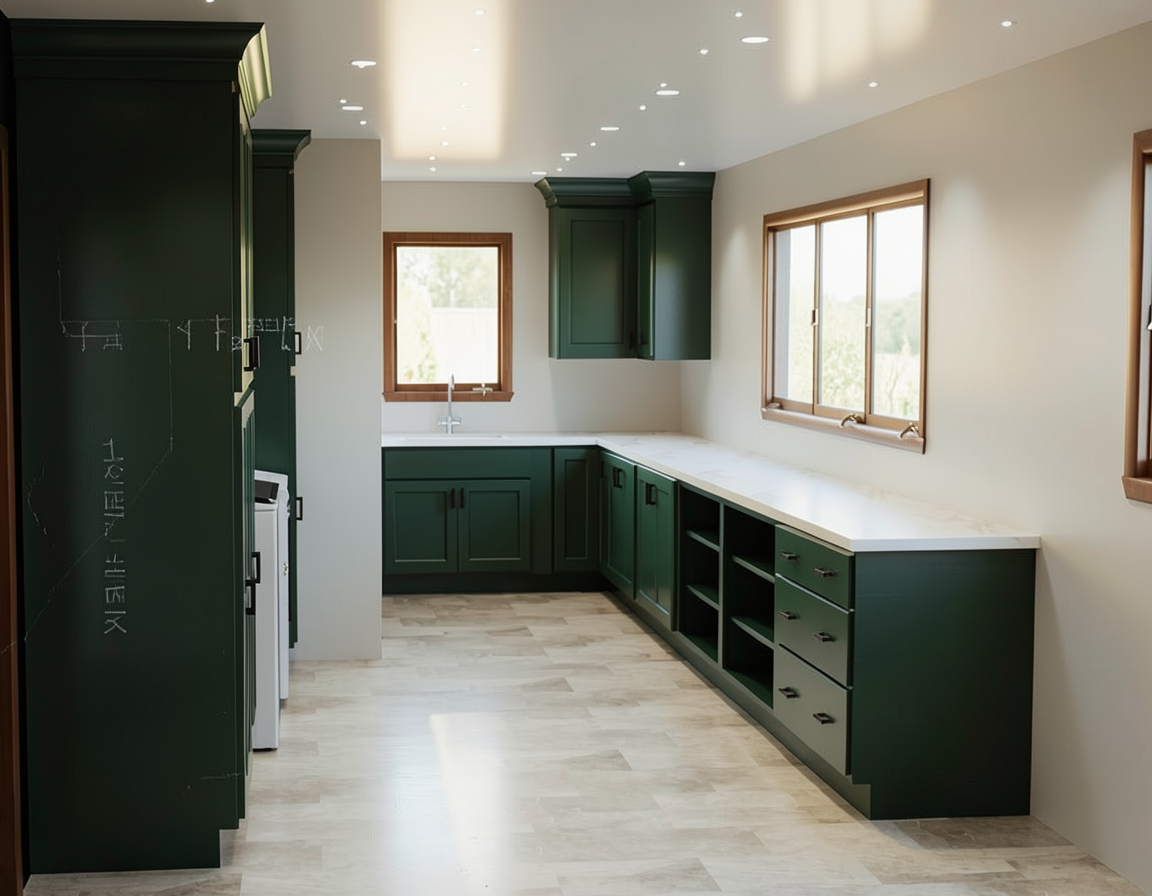 modernist interior shot minimalist warm interior living room with open space kitchen soft neutral tones beige and light wood materials clean modern design large l shaped sofa wooden floor simple round coffee table integrated minimalist kitchen with island hidden cabinets warm ambient lighting natural daylight large floor to ceiling windows preserved exactly as in the plan realistic proportions soft shadows high end interior design mediterranean minimal style calm atmosphere uncluttered space outside terrace visible through the windows with minimalist outdoor furniture light wood and beige cushions clean terrace design partial wall enclosure soft greenery natural light ultra realistic architectural render 4k soft lighting realistic materials no distortion respect original layout architecture
