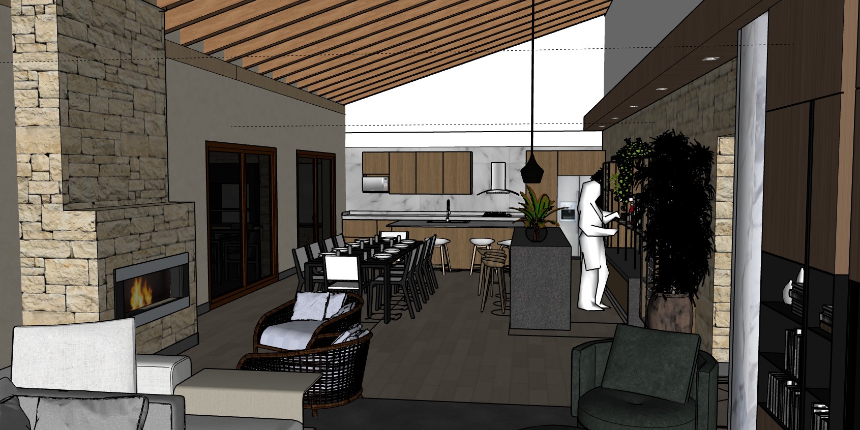 vista interior de salon hiperrealista