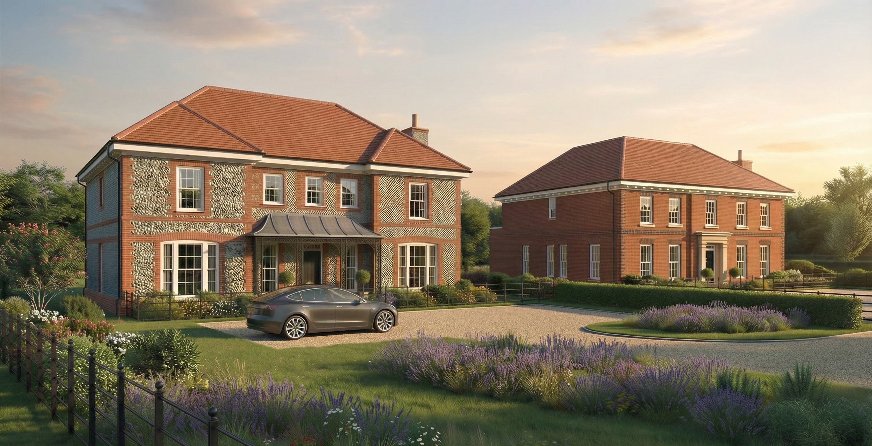 make the grey on the left hand building look like flint with a cream mortar make it look real
