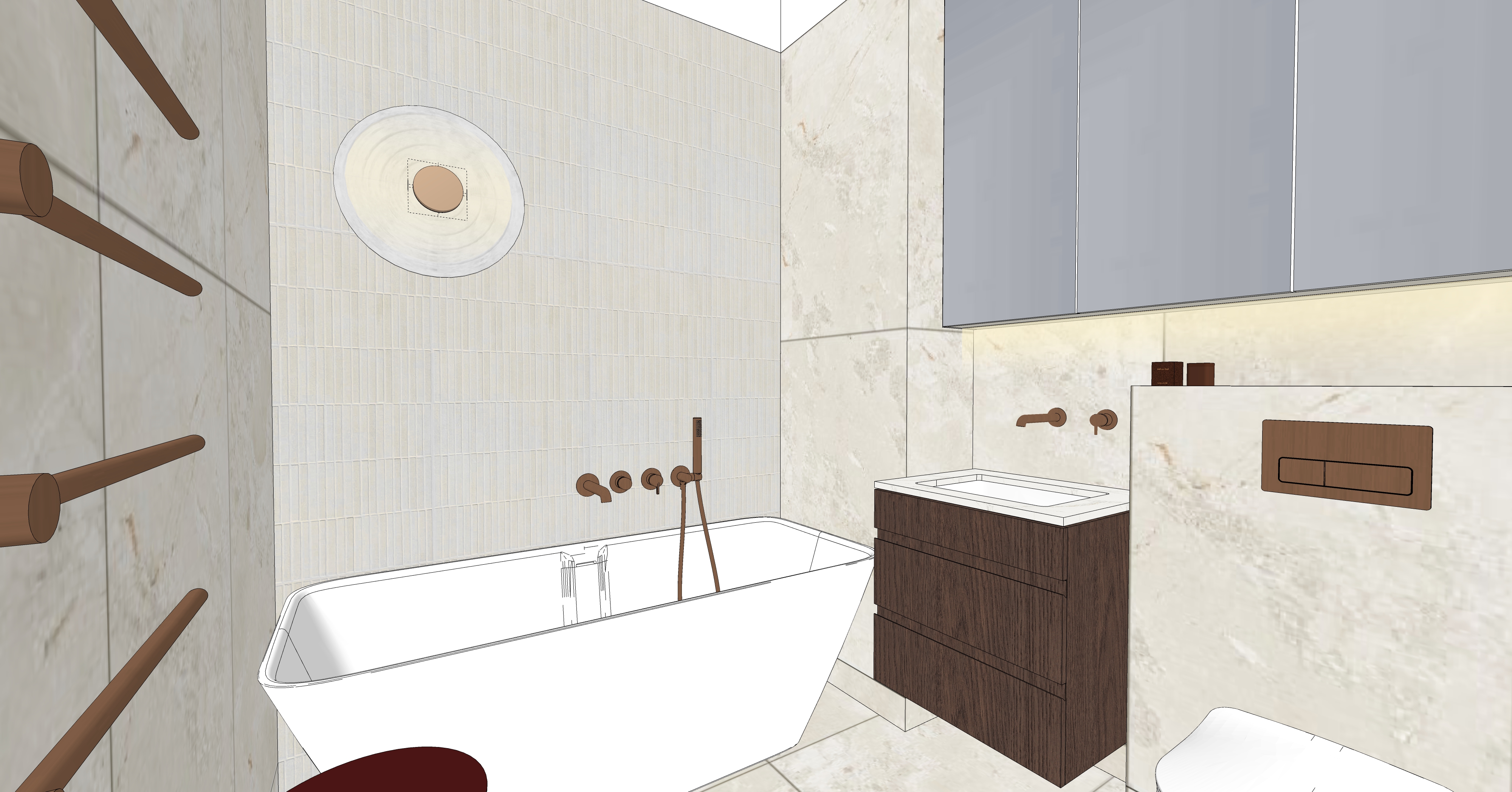 keep original materials tiles are ceradomus karnis ivory bath paa freestanding all faucets are brushed bronze the lamp is aromas del campo rang