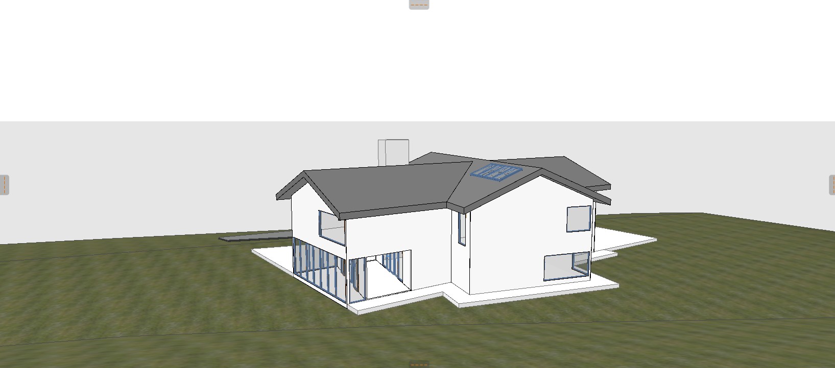exterior shot render a new perspective of the same architectural model maintain the same materials lighting and overall style as the reference image match the landscape character of the reference photo the setting should feel authentic to the truckee mountain environment with native vegetation natural rocks and subtle grading integrated into the scene keep the architectural design unchanged same form windows doors and roof only adjust the site context and perspective to reflect this terrain condition