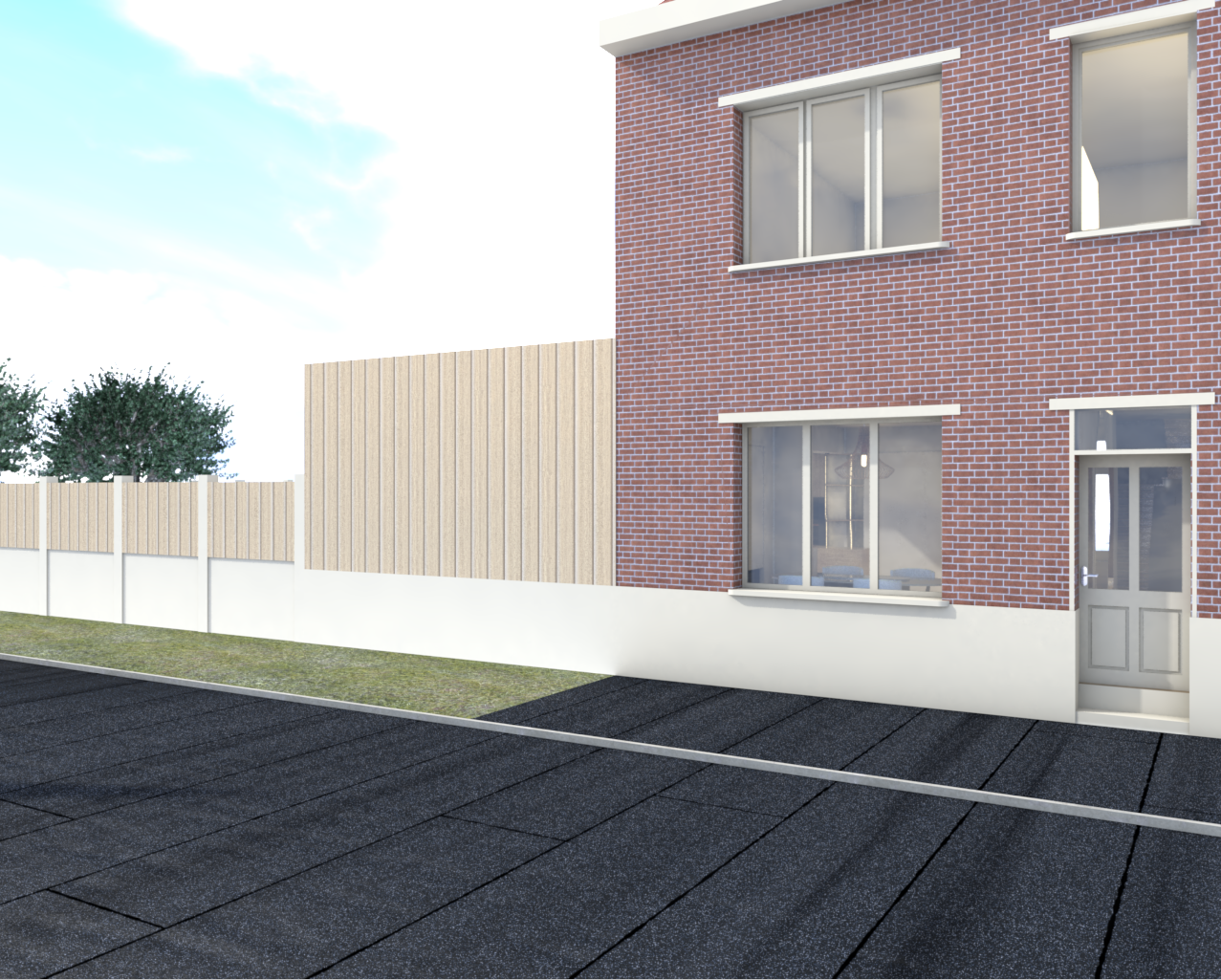 fonce l g rement un peu le bois ajoute des store aux fen tres les menuiseries sont de ral 9001