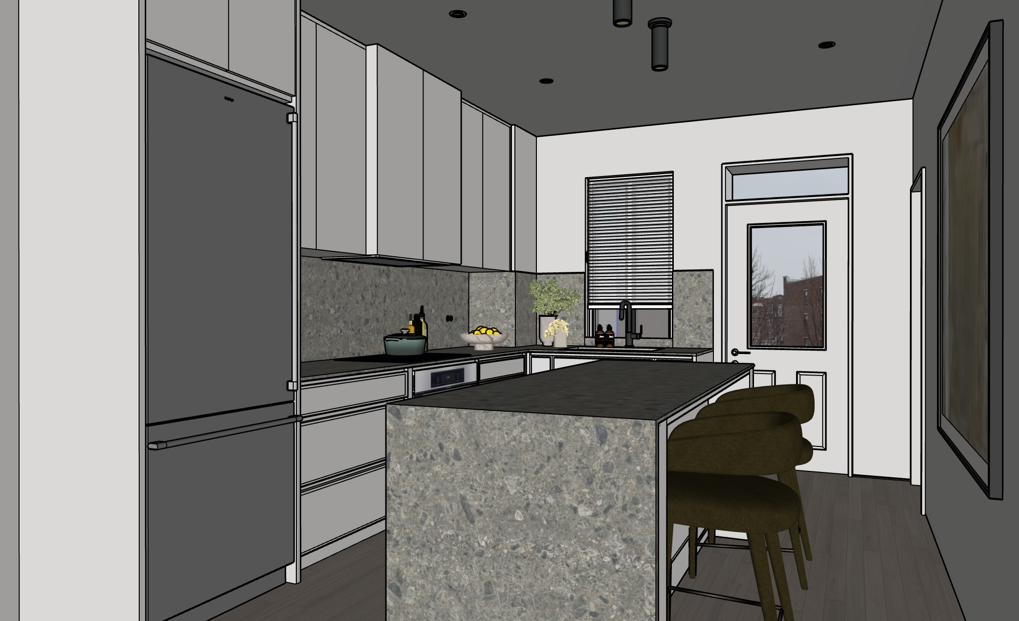 keep everything the same but remove the blind in front of the window and put a roman shade neutral beige
