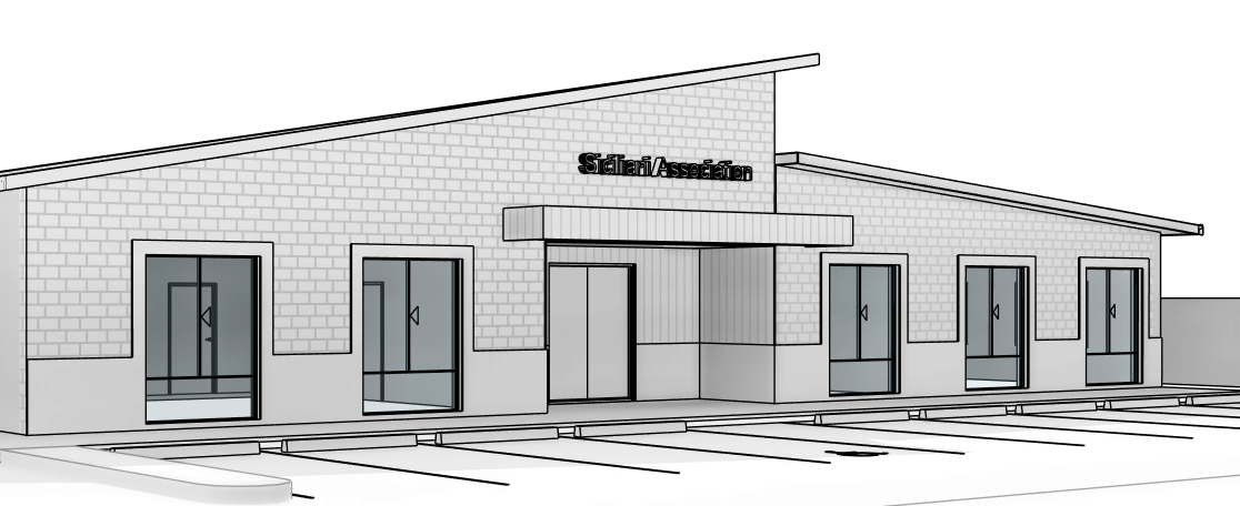 make the vertical cladding timber and the white below plaster keep the rest of the building brick keep the left side brick as well