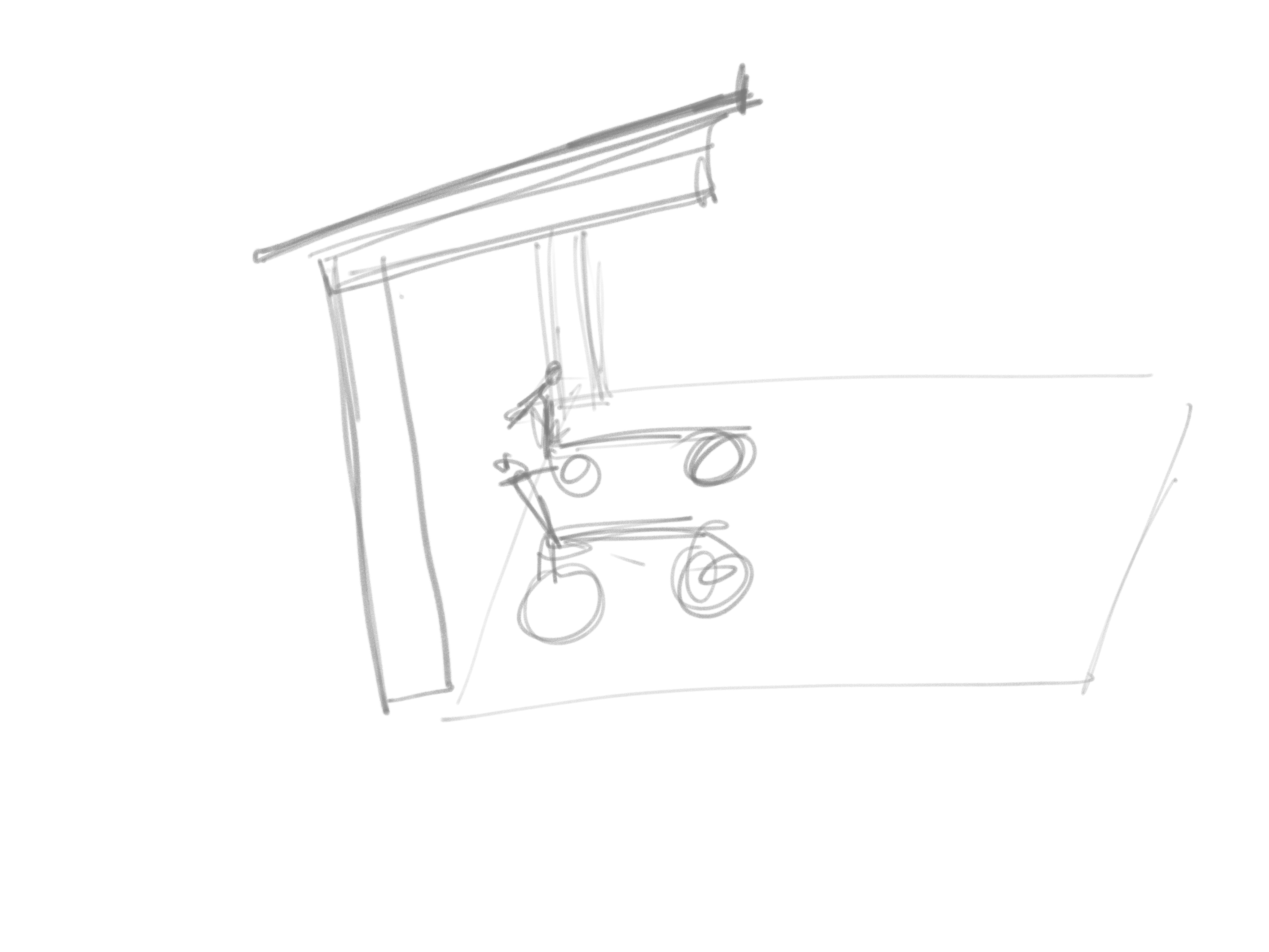 zaha hadid exterior shot canilever canopy photovoltaic panel to charge motorcycles sketch is indicating a side view architecture