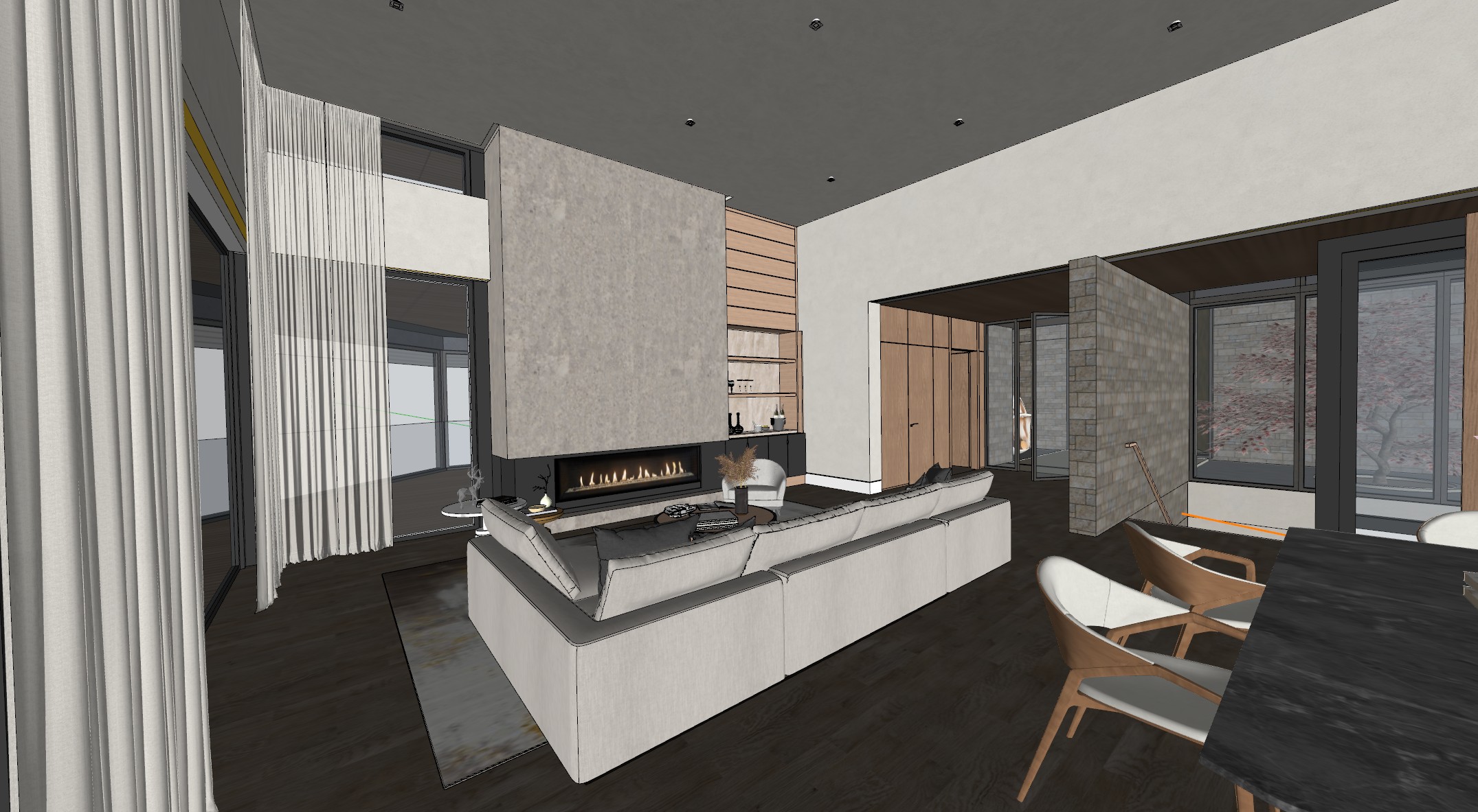modern interior shot make living room look realistic yellow line on the left side is a recesses low light strip architecture