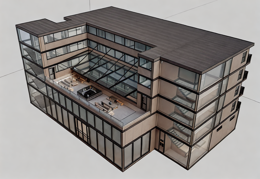 mediterranean revival exterior shot in forest white facade add green lanscape with olive trees architecture