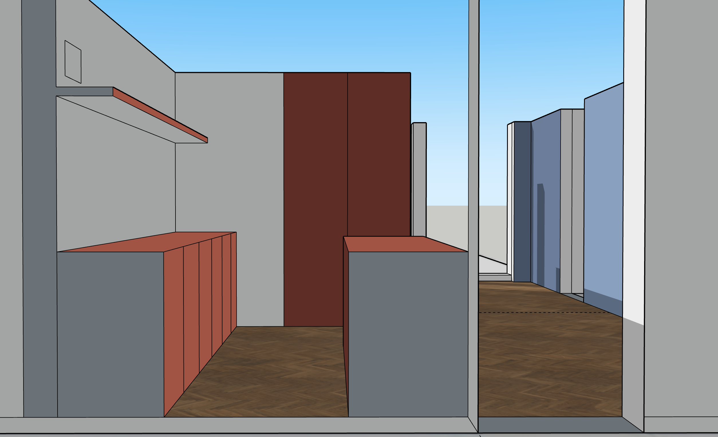 kitchen with poured concrete countertaps and backsplash and polished concrete door panels against a clay plastered wall and long oak floorboards architecture