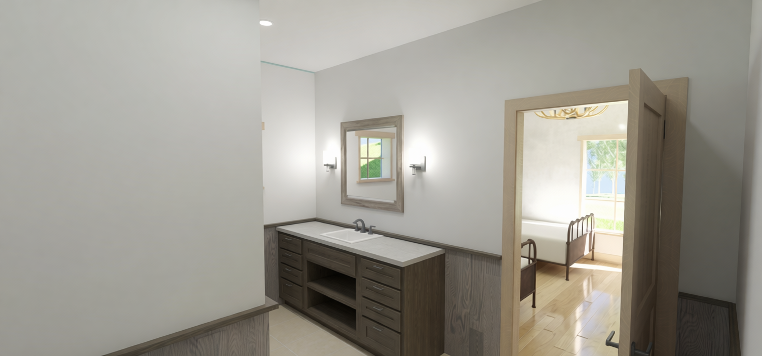 white oak wood floor tan lime washed brick wood ceiling stone countertops good lighting