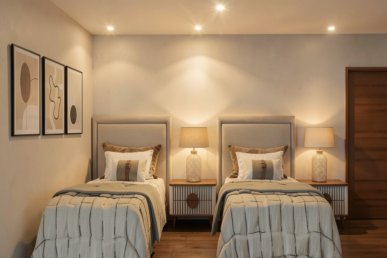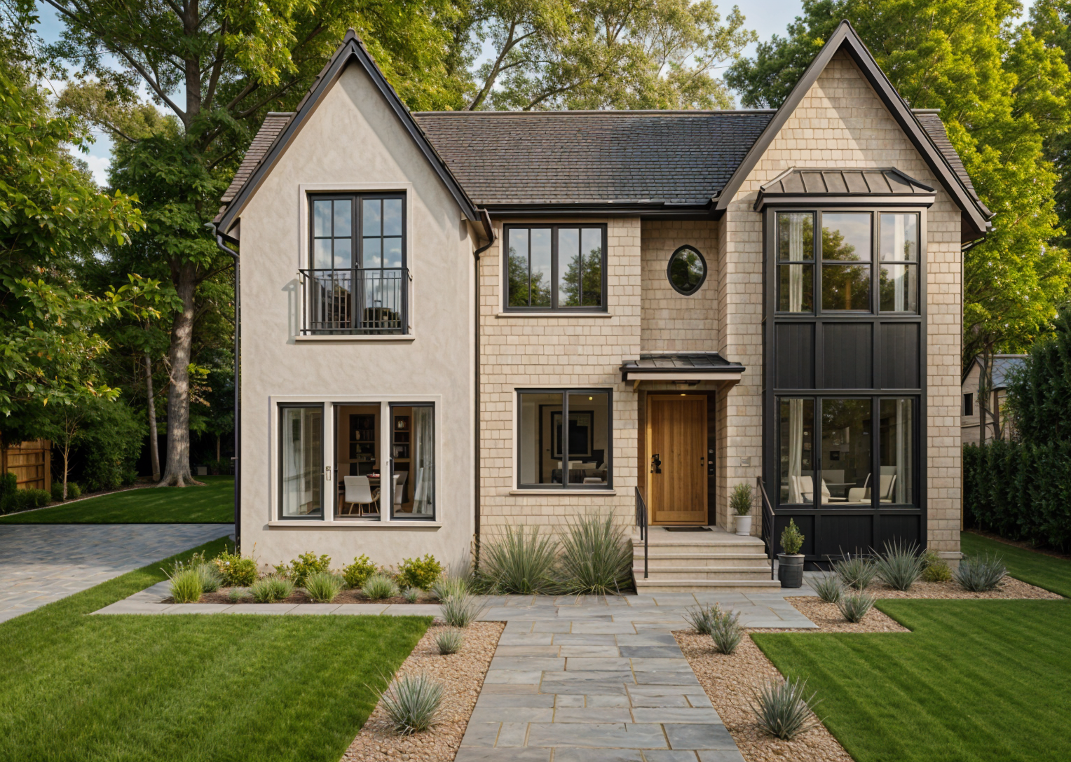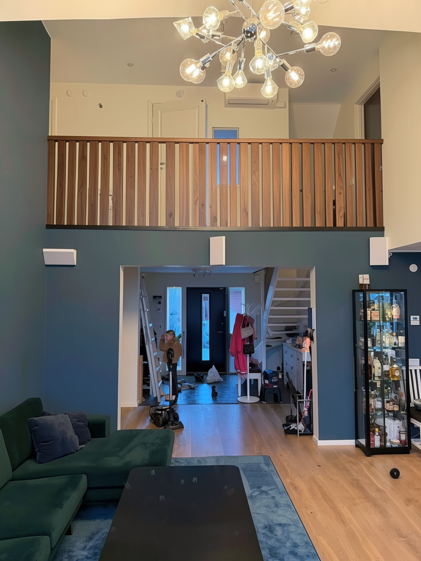 make two narrow glass partitions symmetric placed in the railing