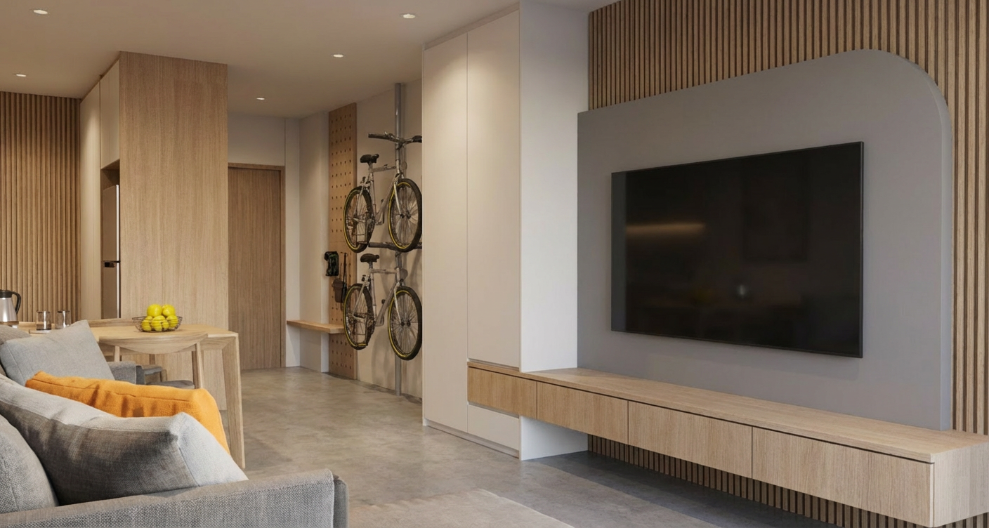 plan of the kitchen add realistic lightning and accessories the counter top and upper cabinets are oak cover all other fronts are white also the walls are white the backsplash in also oak the wood is light make it feel homey