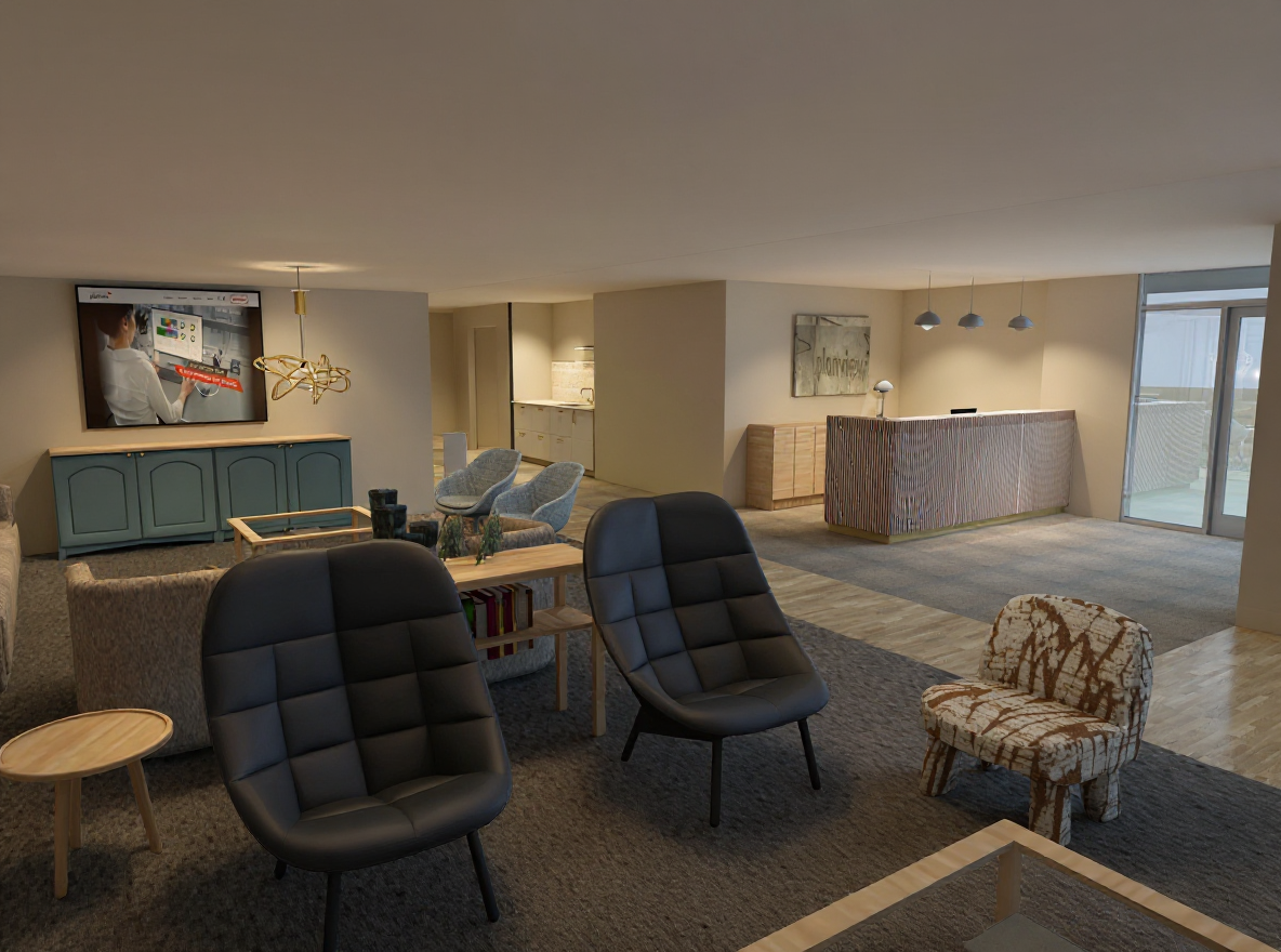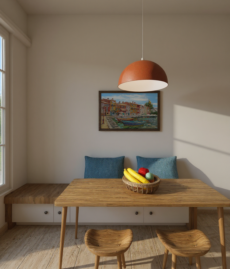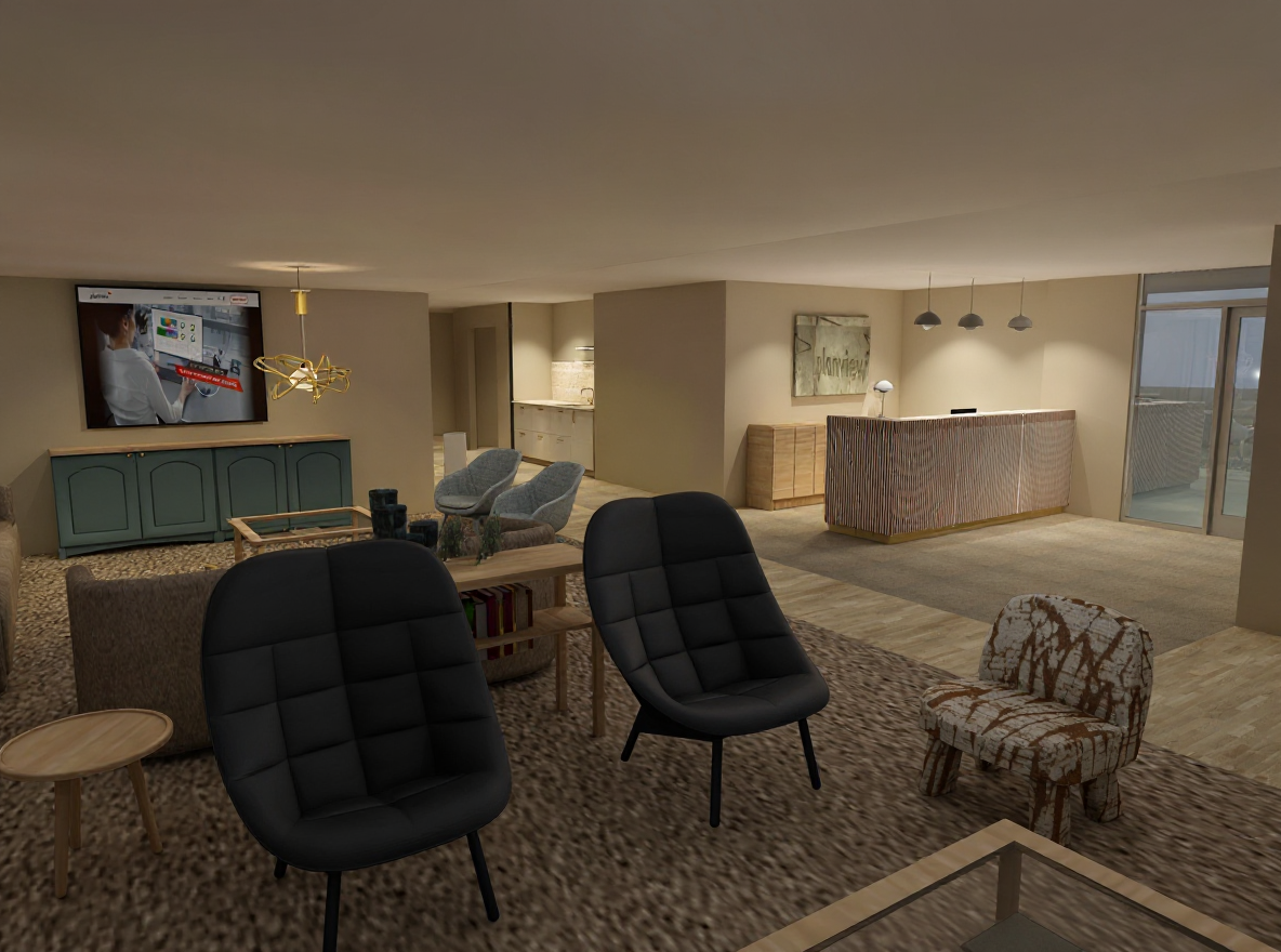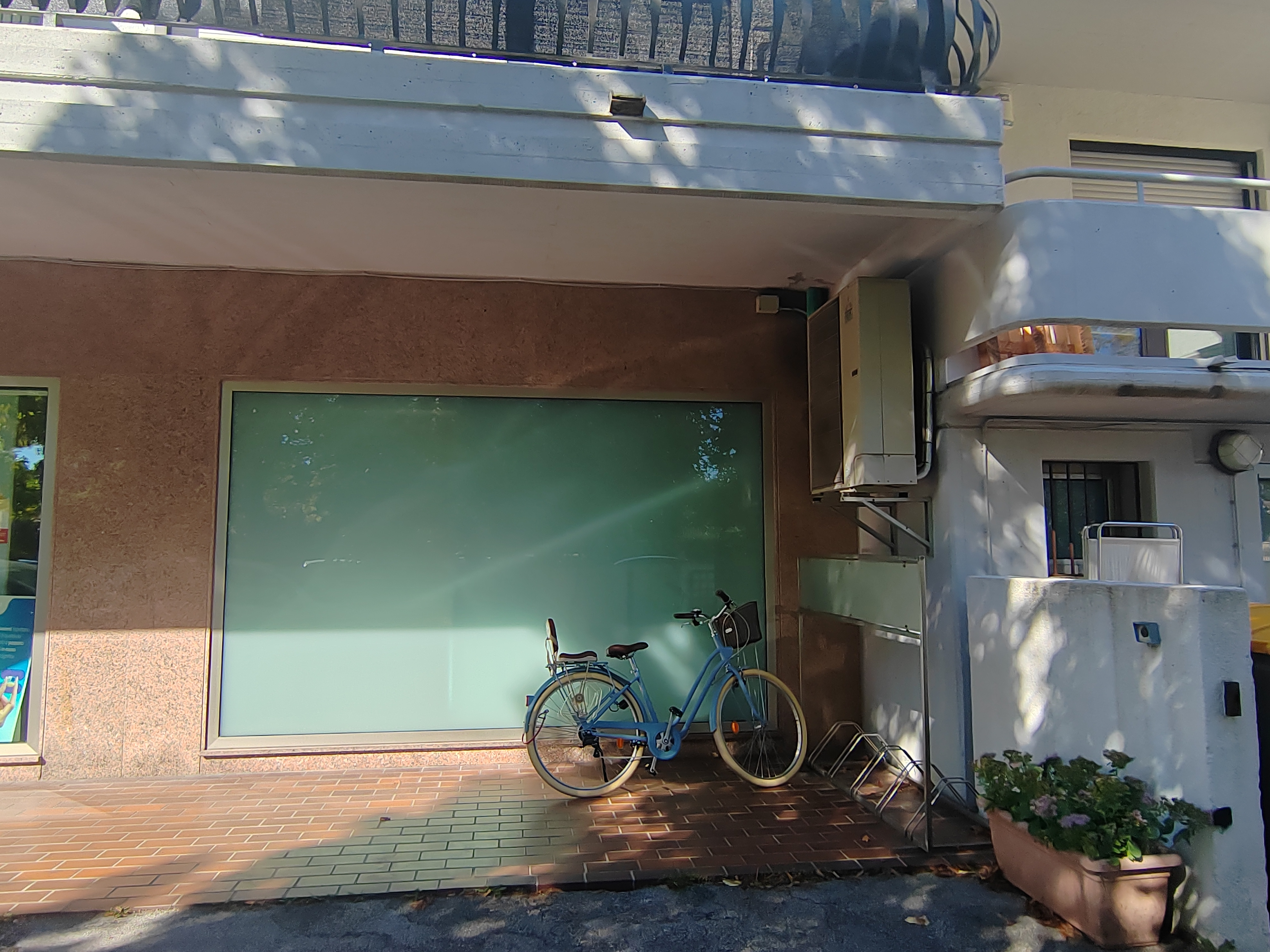 inserisci un elemento rivestito di lamiere grecate che formi un rettangolo davanti alla vetrina e chiuda lo spazio fino a filo del solaio superiore