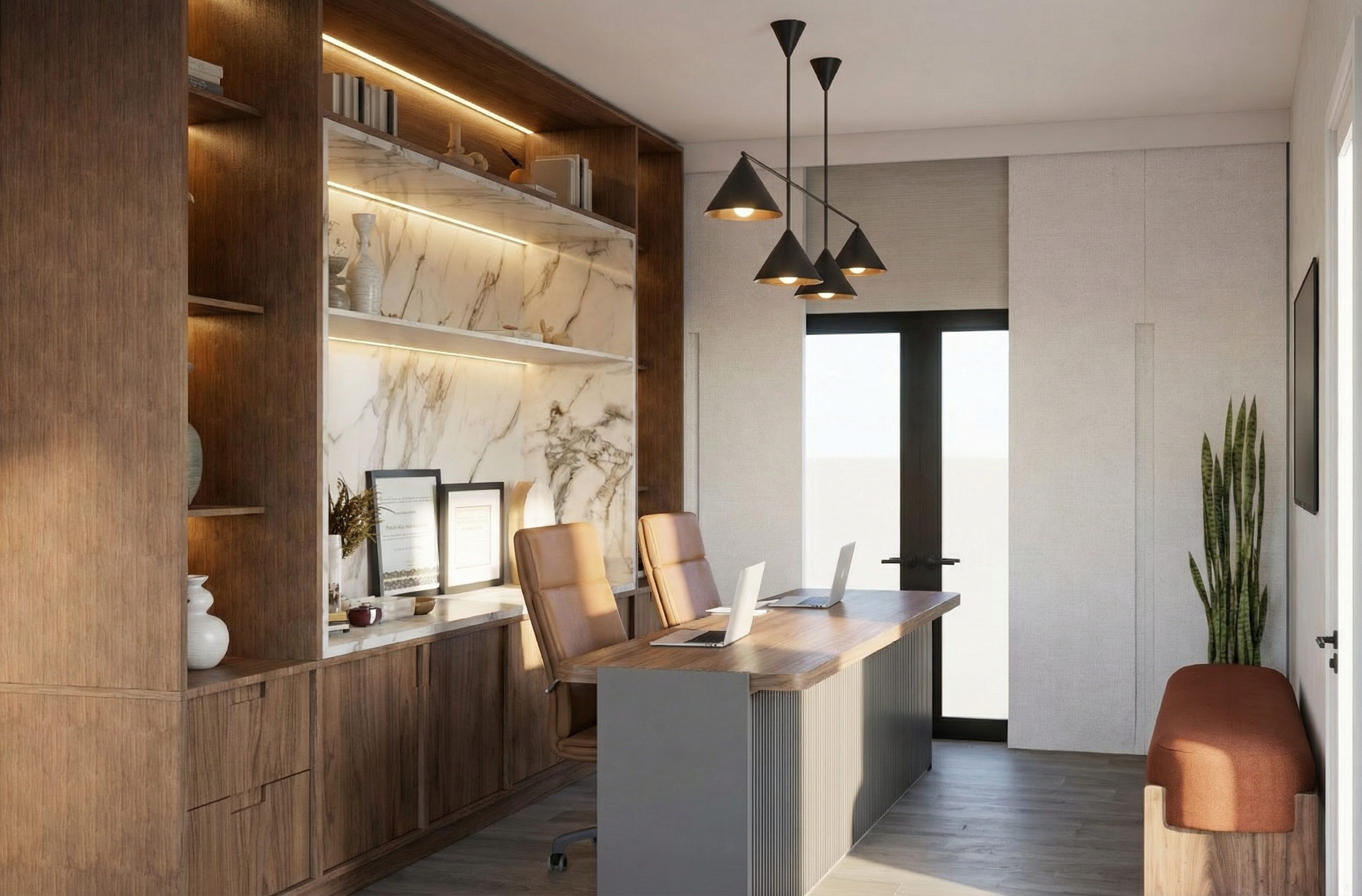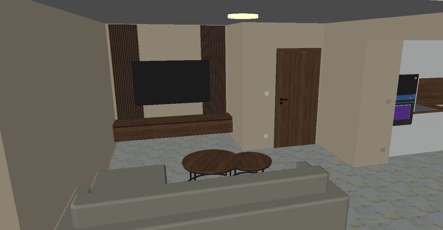modern living room with led lighting under paneling fully closed front wooden cabinet