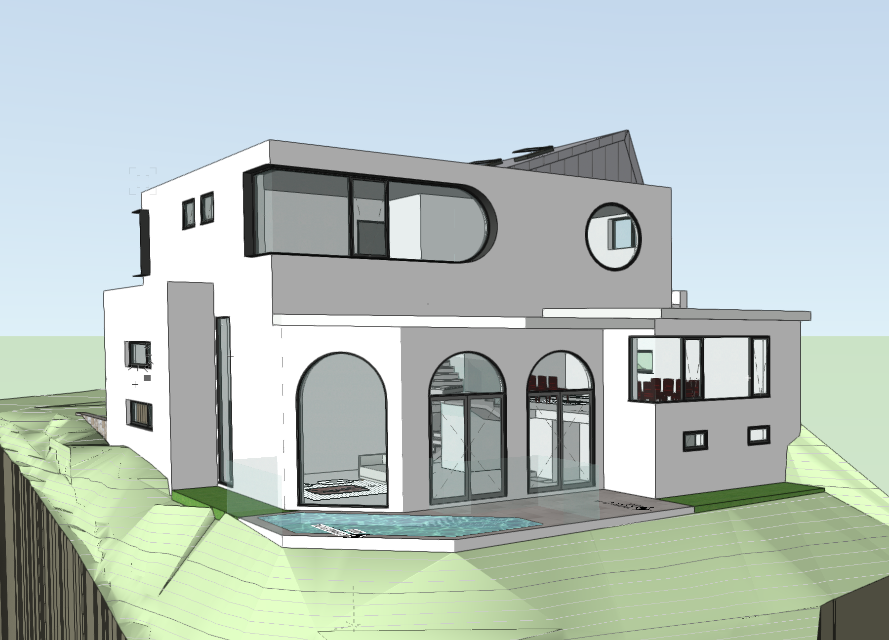 house is surrounded by landscape and neighbour in a sunny day