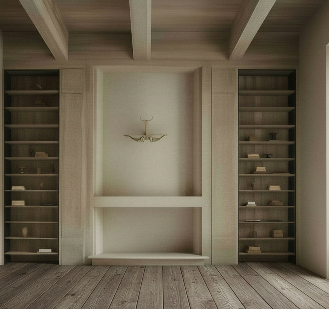 enclose bottom fireplace alcove only with seamless doors in same wall finish