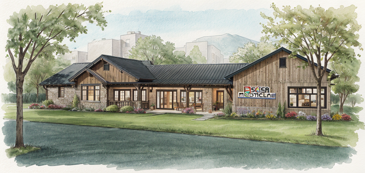 bauhaus exterior shot plastic statue minimalist design in white red and blue colors architecture