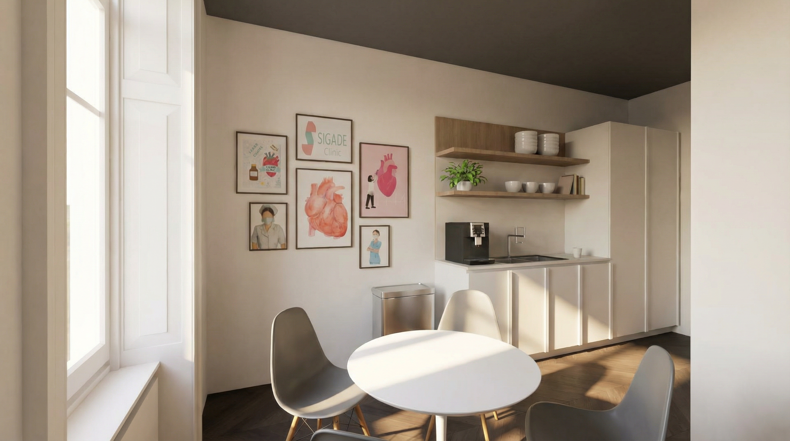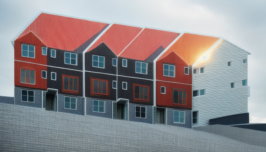 classical exterior shot create a serene and vibrant courtyard scene featuring modern buildings with white and light blue accents and dark gray slate roofs include a lively orange basketball court in the foreground surrounded by lush green hedges and well maintained grass capture people engaging and walking in this lively outdoor space portray the patio with umbrellas in shades of soft red and tables and chairs in light tones the sky is a bright clear blue with a few white fluffy clouds creating a cheerful and welcoming atmosphere add greenery and trees to enhance the natural beauty of the setting architecture