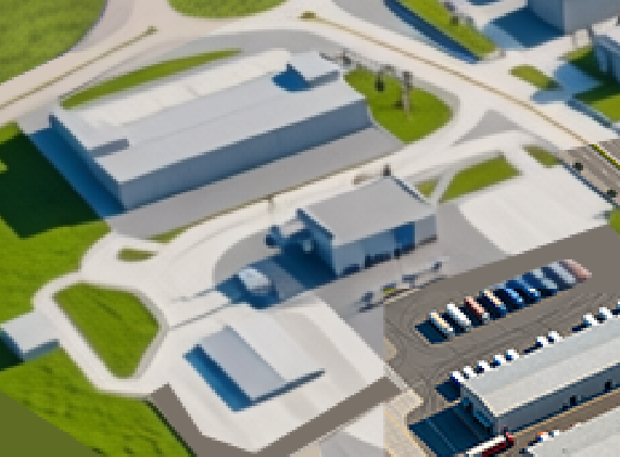logistics warehouses with trucks