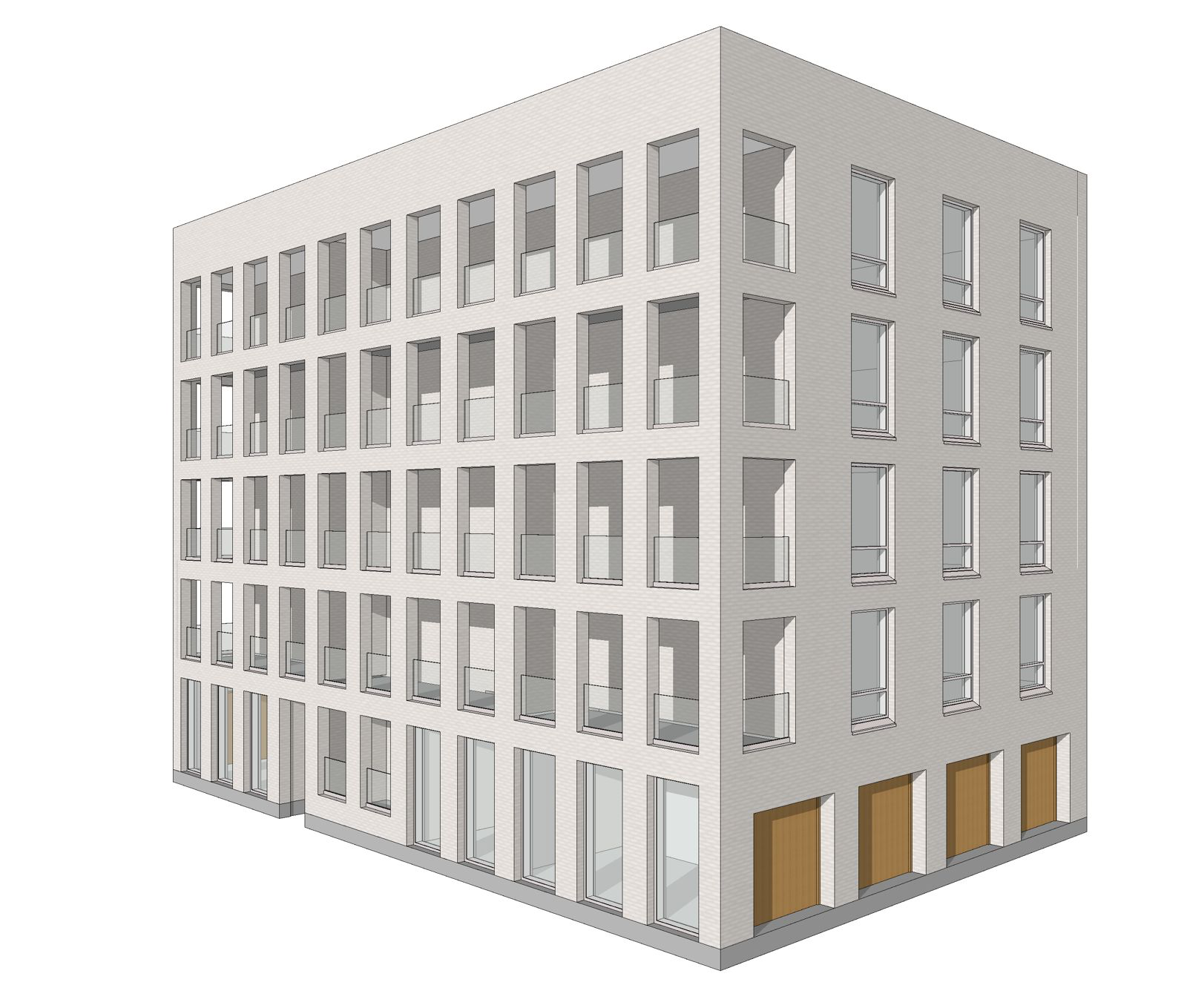 ocean front city apartment building white tile facade oak wooden doors on the right side first floor window frames oak ocean in front of the house before the ocean there is small road for cars and walking road