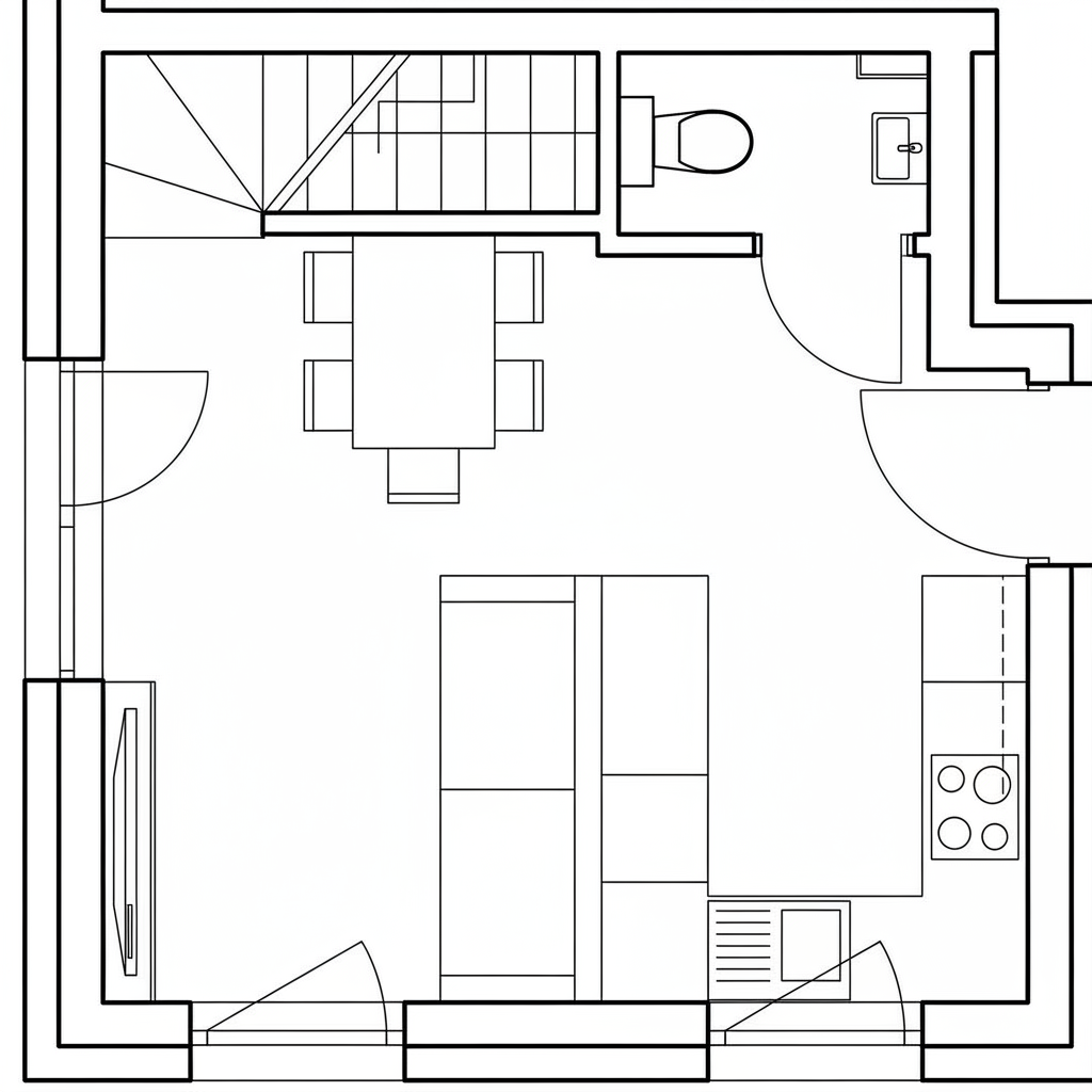 convert this floor plan into a realistic isometric 3d view of a full house show the space from an elevated angle with furniture walls and details visible use the same furniture as shows on the plan do not change the orientation of the floorplan