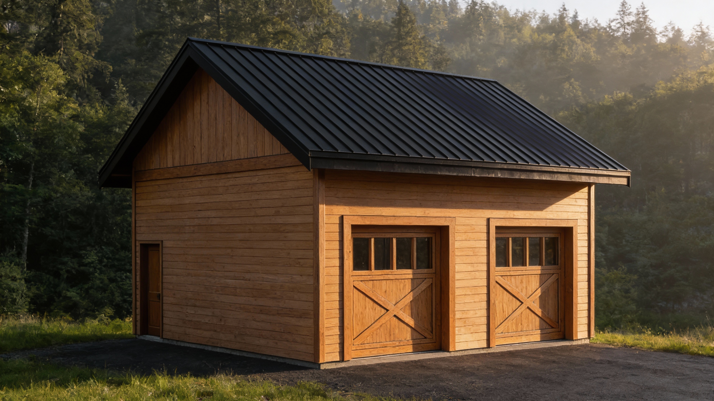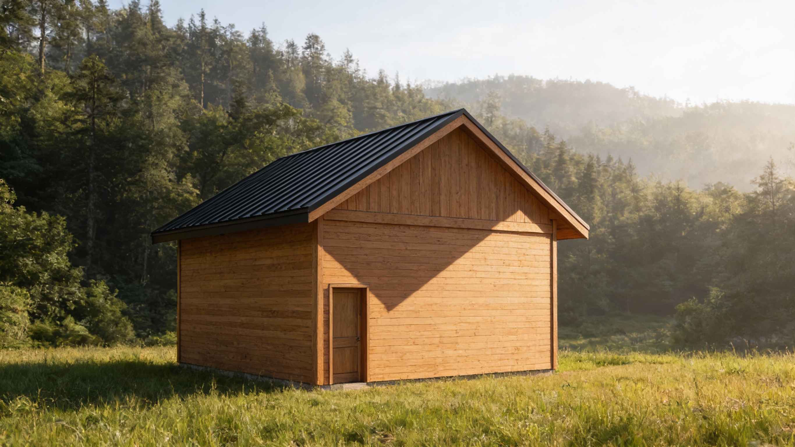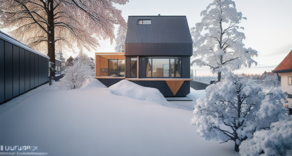 gray pvc cladding with a pcv stone effect like the phots windows and door be be black with clear glass black roof and sofit black put the backround in a garden