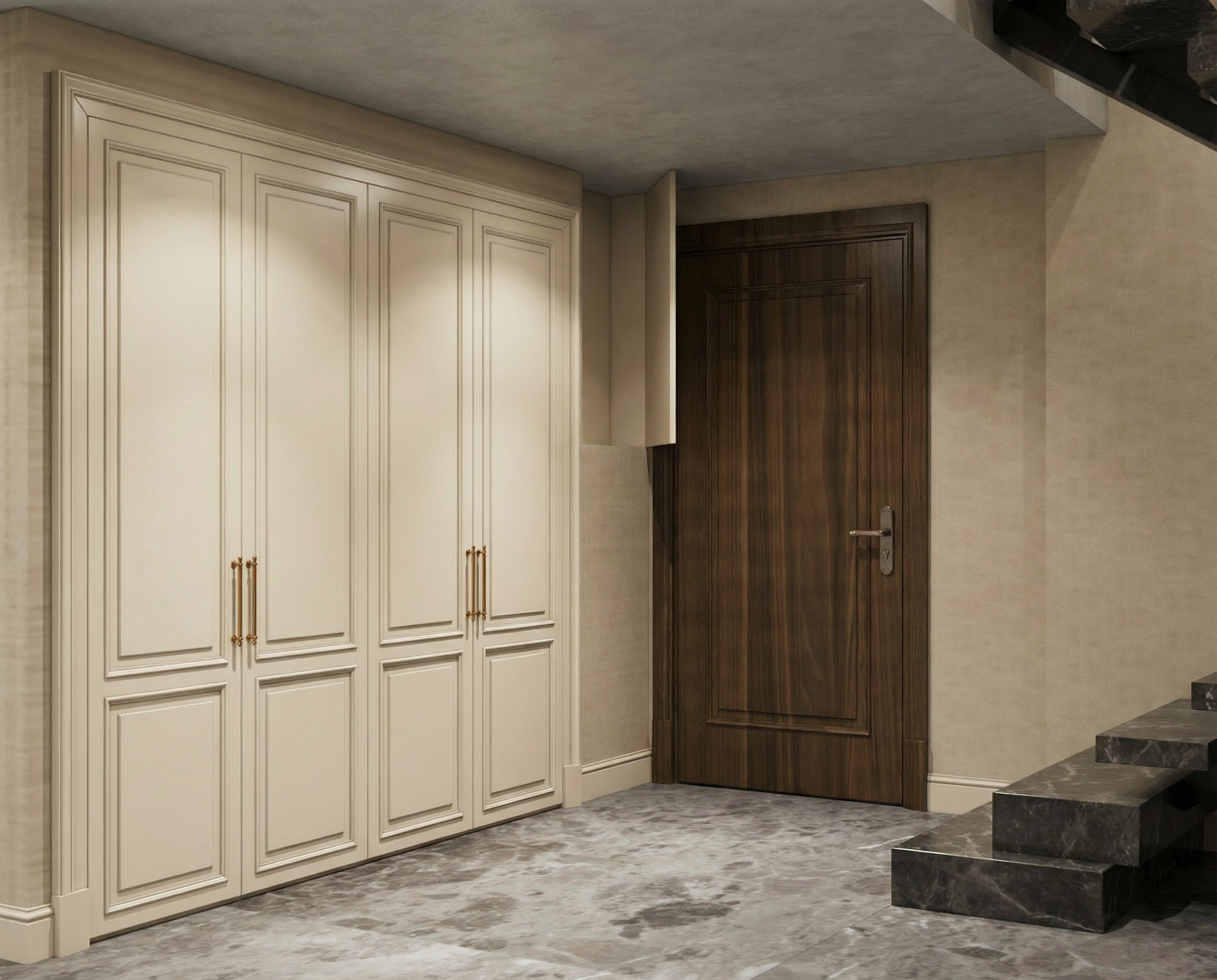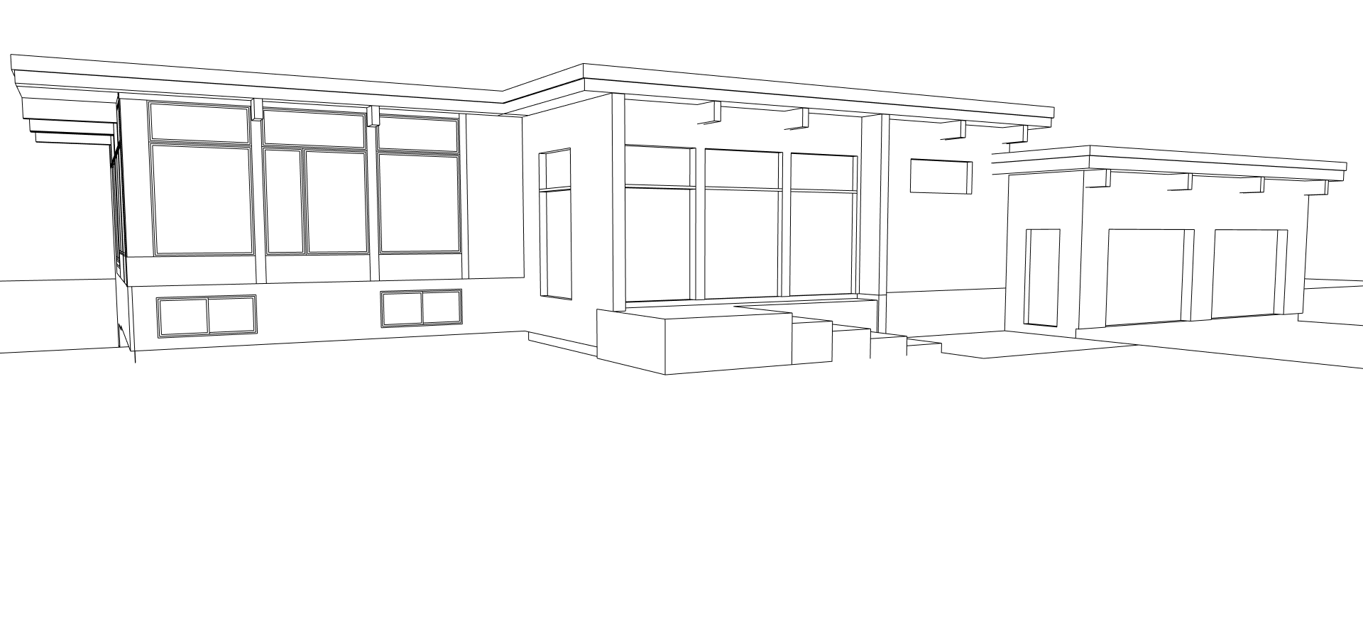 soffite et fascia en aluminium noir cadre de fenetre noir portes de garage noir poutres de bois en pin naturel entr e devant paortes de garage en pav avec des arbres autour de la maison revetement de bois horizontal couleur brun moyen clairage encastr dans les soffites