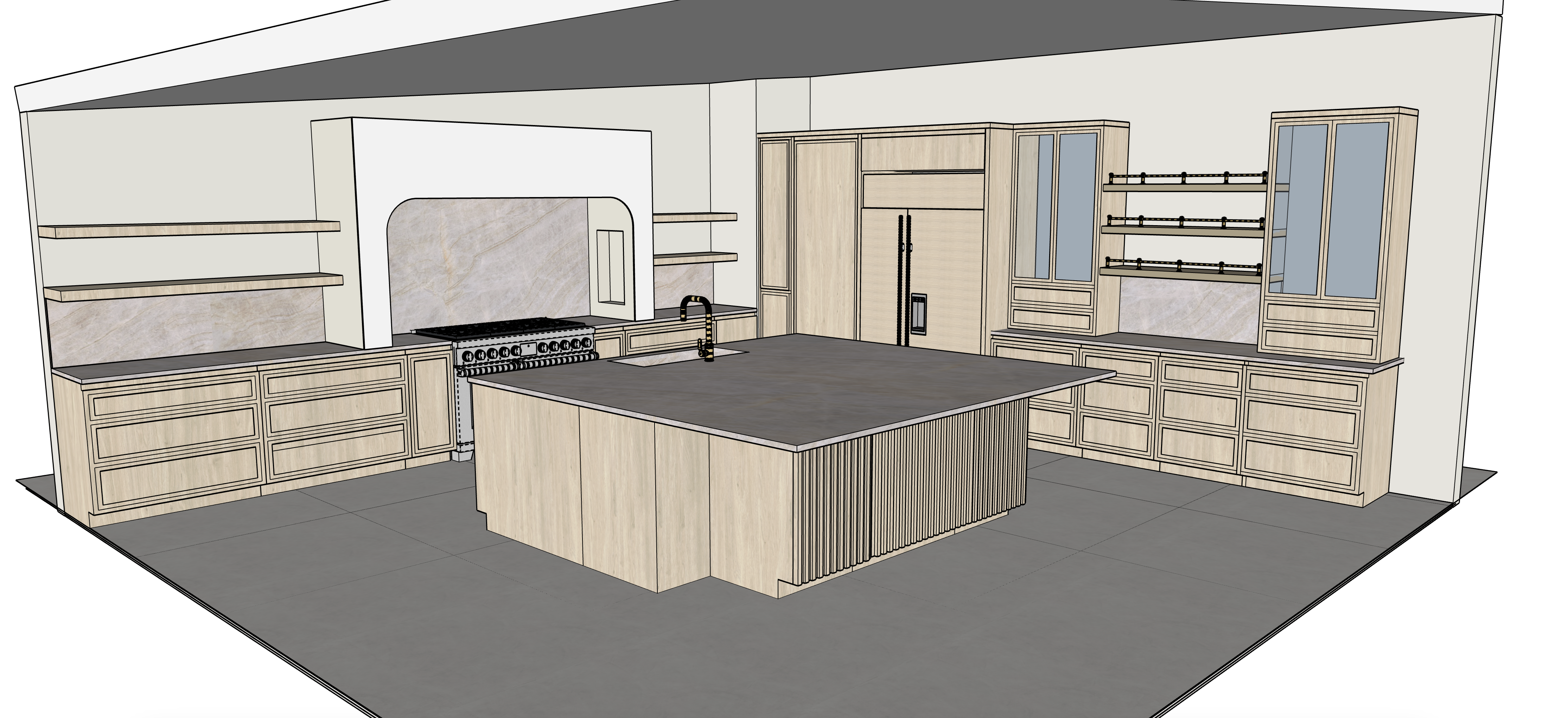 interior shot rendering modern sleek kitchen with mood lighting oak wood white floor