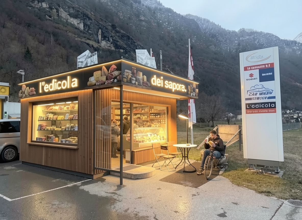 insert the front writing l edicola on the upper band in black insert the illuminated front writing dei sapori remove the front stone part halve the width of the front window