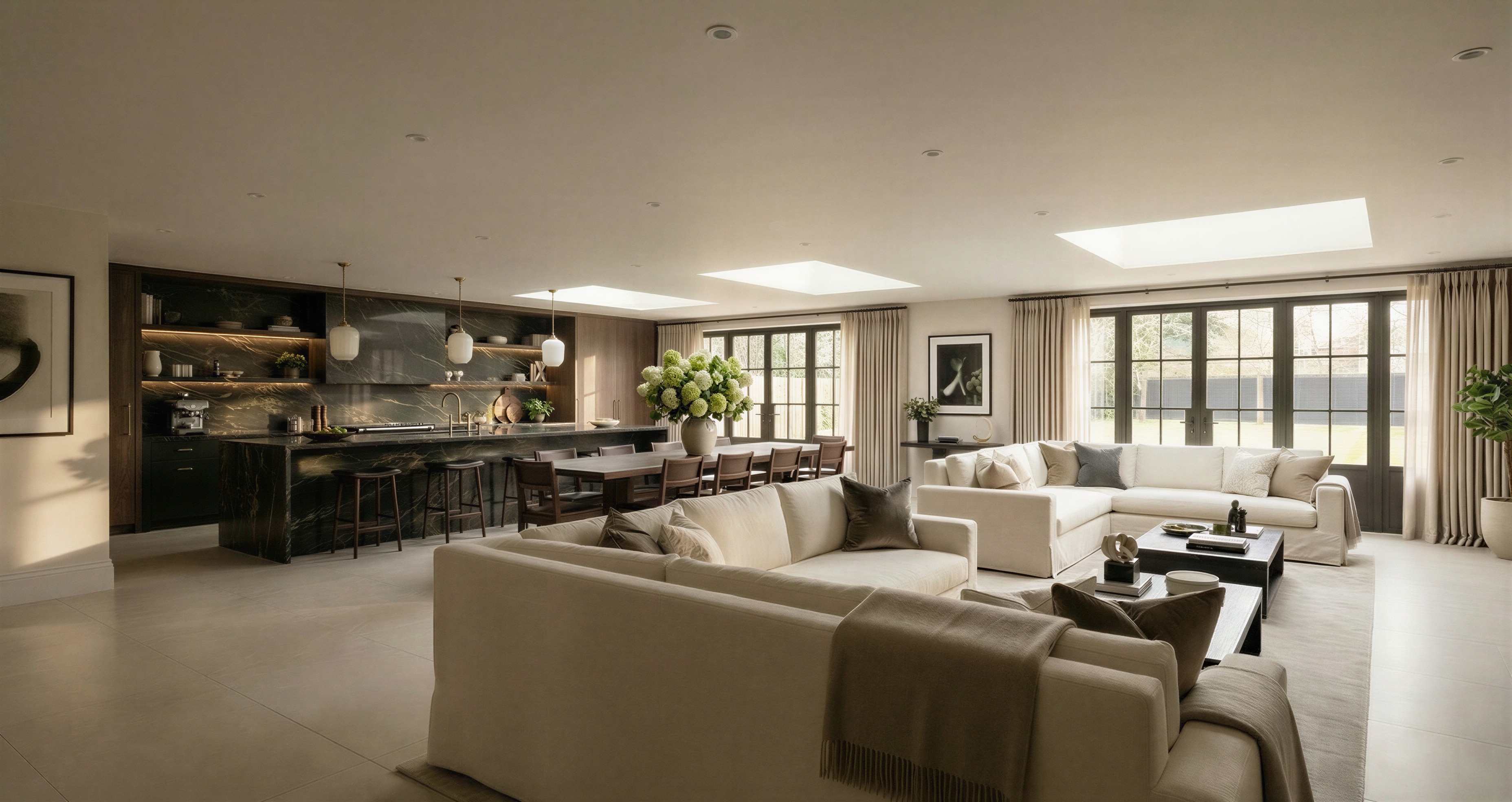 make this look more realistic as it looks like an ai image and i want to look like a photograph also make look more luxurious and stylish make the kicthen a dark green colour with a light white and black vein through it