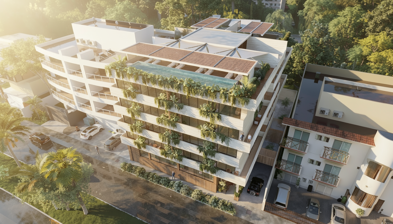 the building is located in the small city feldbach in styria the right entry is for a grocery store on the left side darker walls is a restaurant