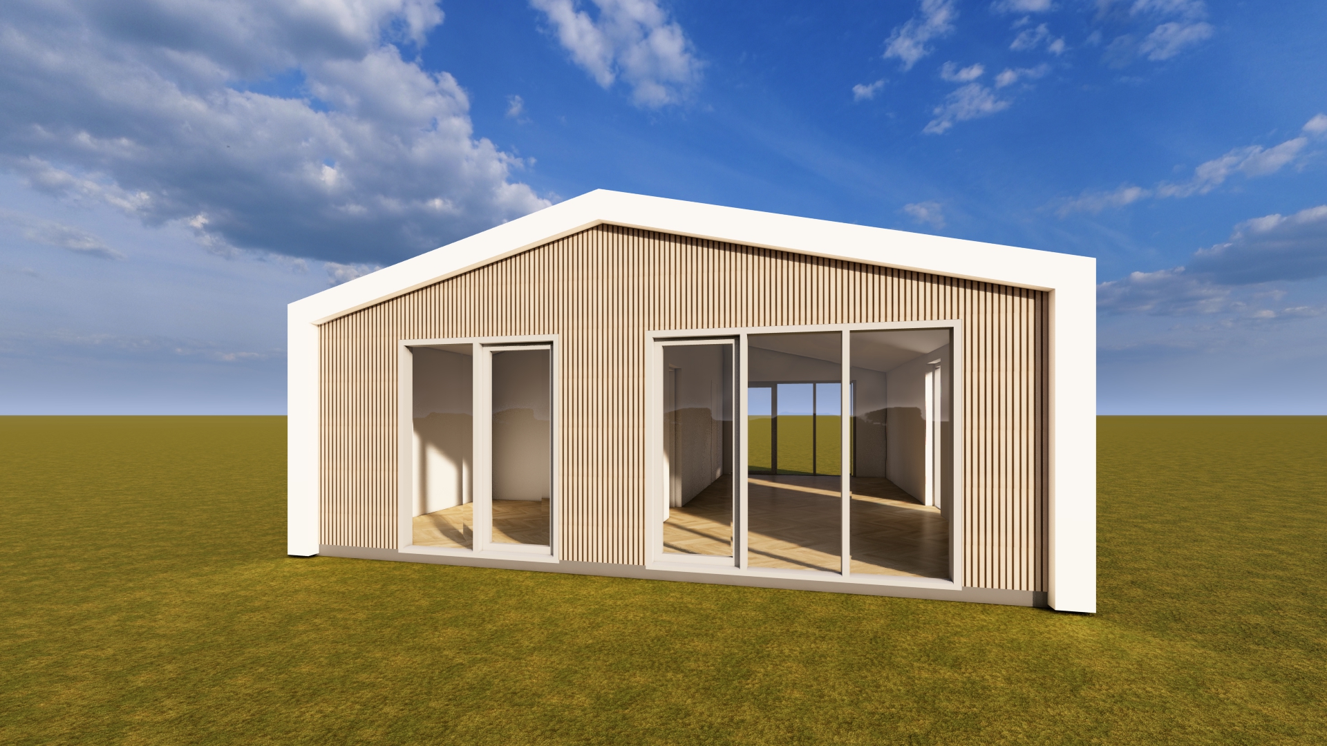 huisjes kopieren en plaatsen in omgeving veel bomen en planten en bloemen toevoegen ruimte links is slaapkamer ruimte rechts is keuken en woonkamer