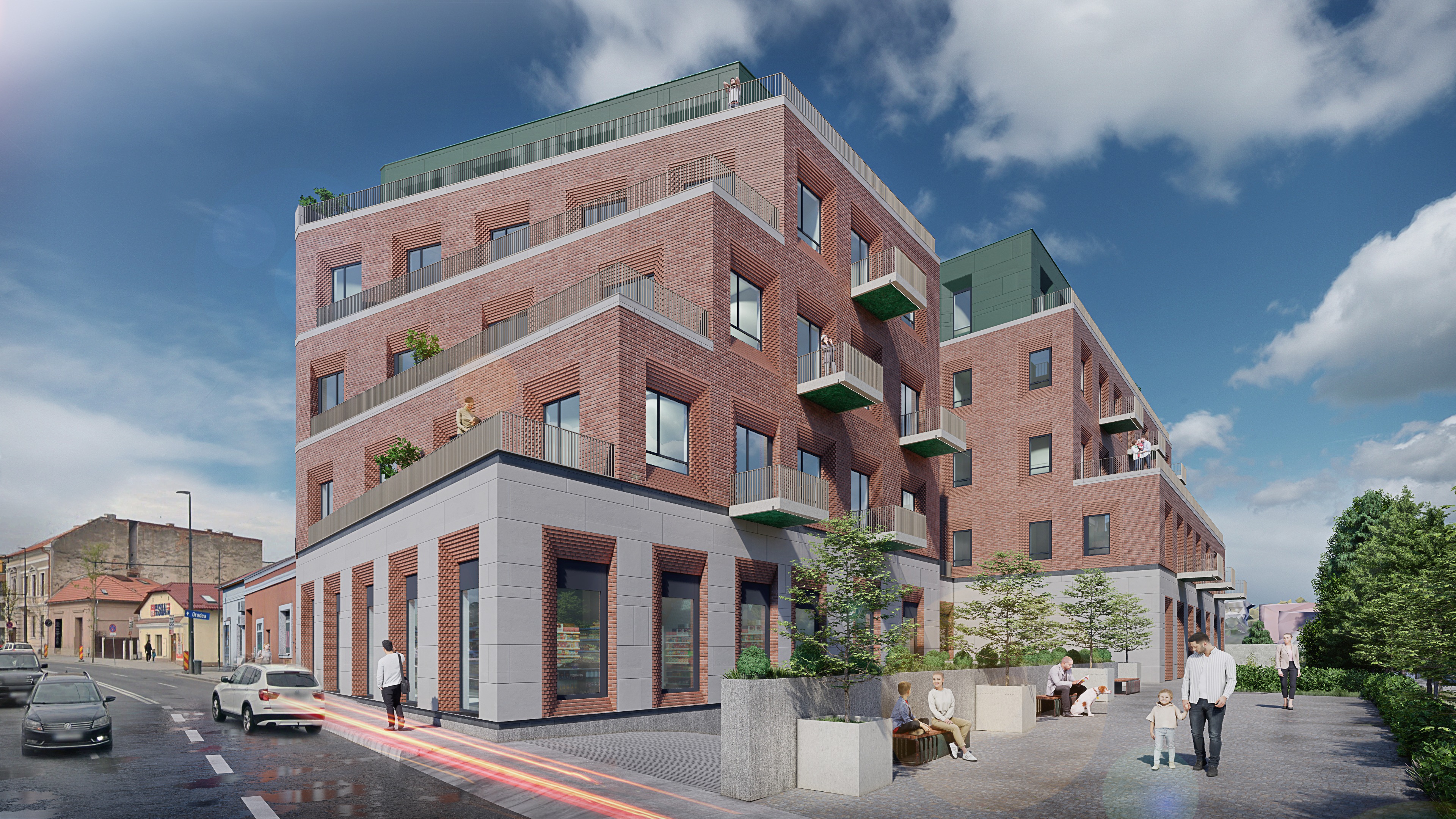 important preserve the existing geometry and the existing context exactly as provided do not modify alter reinterpret add remove scale or reshape any geometry do not change the site surroundings street layout neighboring buildings vegetation or context elements do not modify geometry scale proportions buildings road layout sidewalks or surrounding context in any way do not change text photorealistic architectural rendering clean and balanced contrast calm cinematic mood style contemporary european residential architecture minimalist premium understated include people and cars subtle motion blur for realism delete all people and cars do not alter the church color soft overcast noon atmosphere diffused natural daylight with subtle blue grey tones cinematic architectural mood large glass surfaces with realistic reflections soft mirror effect subtle environmental reflections of sky and surroundings wet pavement with smooth reflective surface soft light bounce and blurred reflections high dynamic range lighting realistic global illumination soft shadows calm and minimalist nordic mood photorealistic architectural visualization balanced exposure no harsh highlights