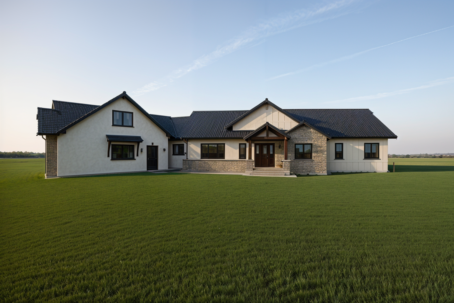 contemporary spanish style bright white stucco walls santa barbara olive trees spanish lavender copper rain gutters bright sunset sky with colorful clouds car in driveway
