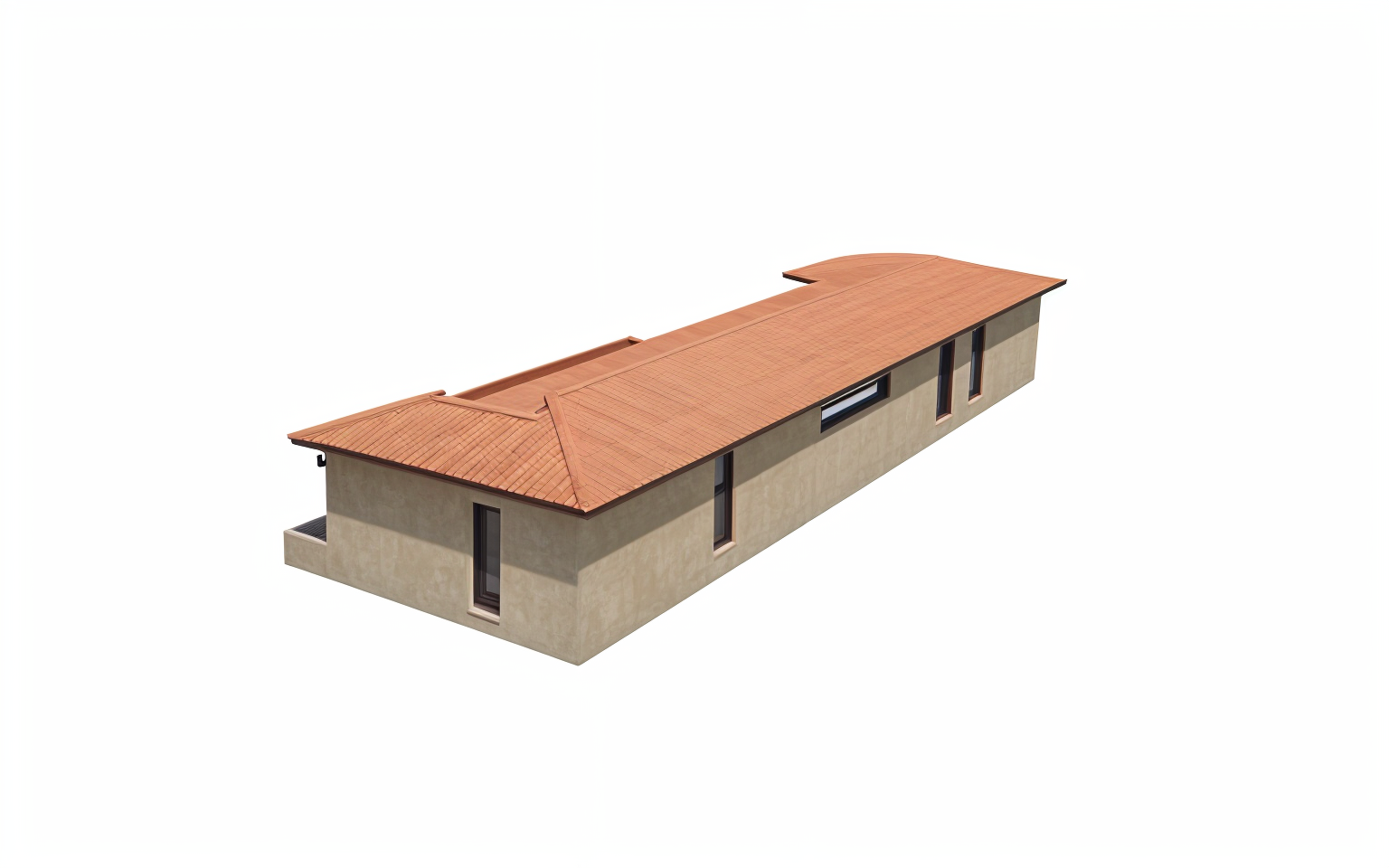 modernist exterior shot modern single family home with warm lighting dark brown siding gray brown stone veneer and black metal roof architecture