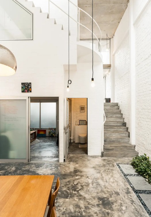 modern exterior shot follow the image exactly like the window walls door make this interior more cozy floor in wood vynl ceiling lower add loft and lift lift place it 1 meter of the staircase staircase steps with light and in wood finishes railing all in black wall in beige wall colour ceiling lower with loft about 2 8 metter height architecture