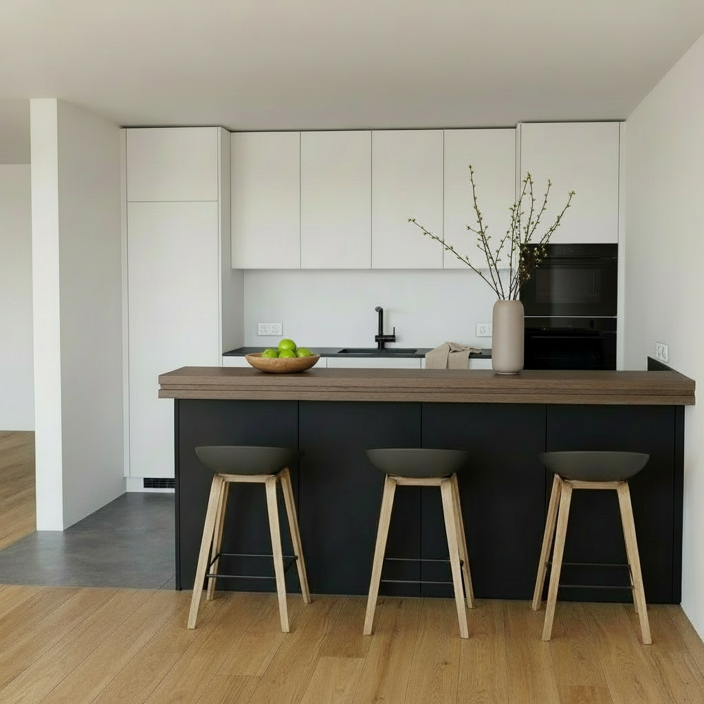 extend the scene to the right continuation of the same white wall and oak flooring maintain exact camera position and perspective no new openings consistent natural lighting