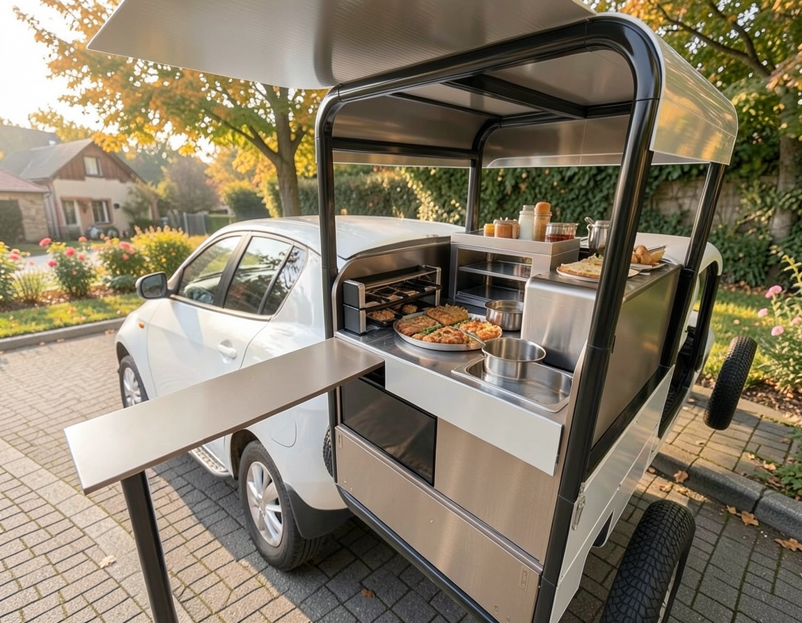 ultra realistic interior render of a compact bar kitchen vignette do not add any additional cabinetry beyond what is shown in the model there is no cabinet on the left side wall keep the left wall clean and uninterrupted cabinetry high gloss lacquer finish in sherwin williams red cent deep warm red with reflective lacquer sheen the finish must read glossy and smooth not matte only cabinetry shown in the model no additional units island white quartz waterfall edge with clean modern lines back wall statement tiger wallpaper with warm tan background and cream and black tiger motif window large centered window with a soft blue gray roman shade mounted inside the window frame inside mount shade should appear tailored and slightly textured linen shelving two floating glass shelves only clear glass shelves supported by minimal matte black metal brackets no pipe system no vertical metal framework just two simple shelves lighting two brass pendant lights centered over the island warm brushed brass finish with soft golden glow flooring wall to wall carpet using the attached woven geometric pattern rich brown taupe and cream interlocking rectangular motif carpet texture should read soft but structured slightly dimensional not flat exterior view jordanelle reservoir mountains in park city utah rolling hills with touches of green and red vegetation golden hour lighting warm low sunlight entering the space soft long shadows warm highlights reflecting subtly on lacquer cabinetry and brass pendants lighting mood cinematic golden hour warm natural sunlight balanced with soft interior ambient lighting accurate reflections on lacquer true to life material rendering no overexposure camera eye level slightly angled toward island show pendants shelving full window and carpet clearly ultra realistic architectural digest editorial style 8k resolution