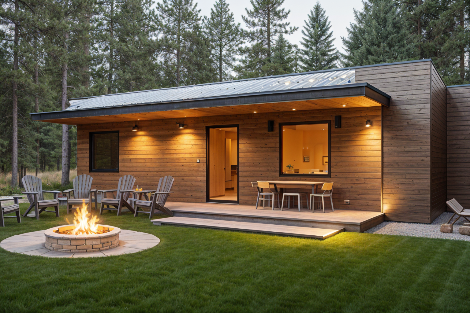 modernist exterior shot keep all the colours and grass the same only change the roof make the roof sloped all along the roof line and colour it a slightly glossy black architecture