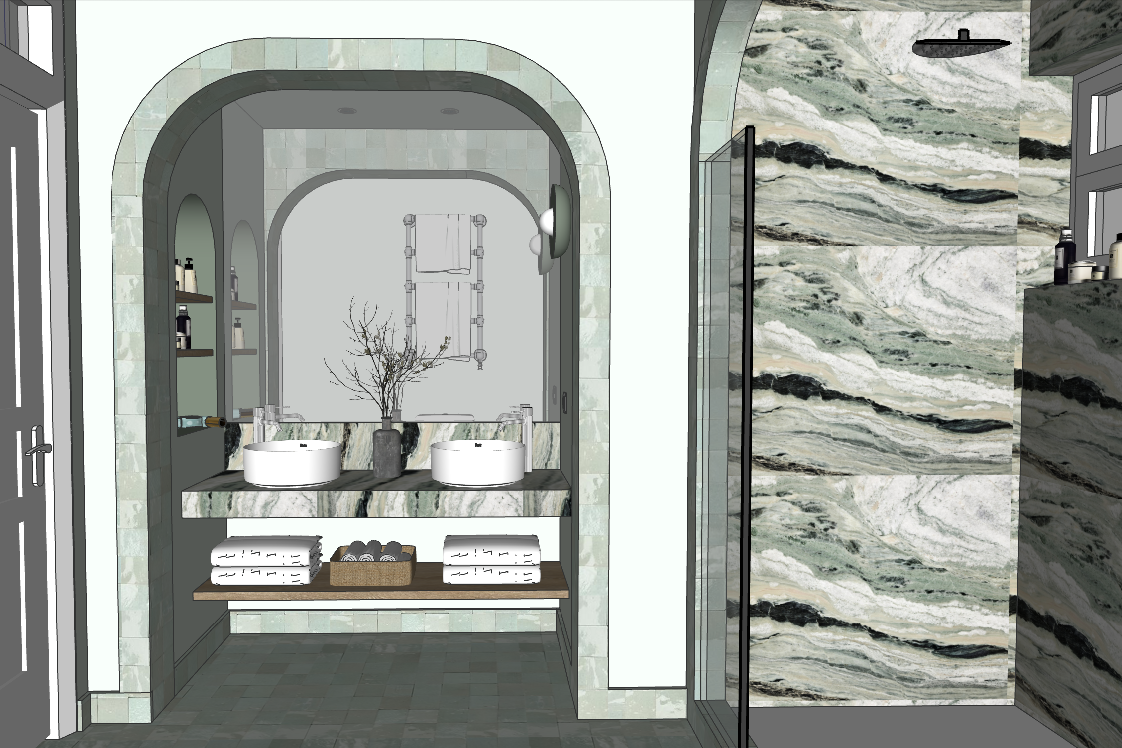 ajoute de la lumi re naturelle et allume les luminaires le seche serviette est chrom ne change rien d autre