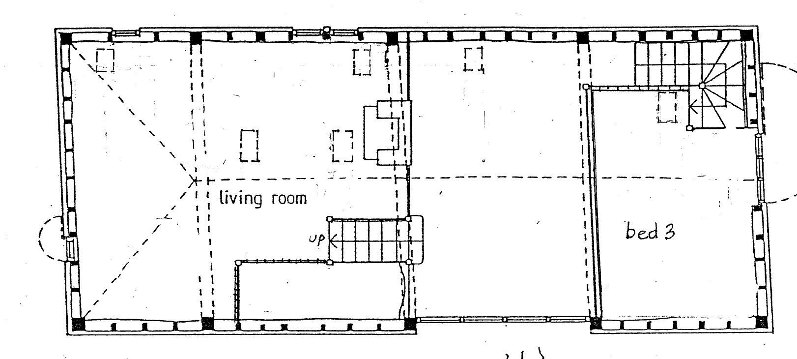 convert this floor plan into a realistic isometric 3d view of a full house show the space from an elevated angle with furniture walls and details visible old barn conversion use the same furniture as shows on the plan do not change the orientation of the floorplan