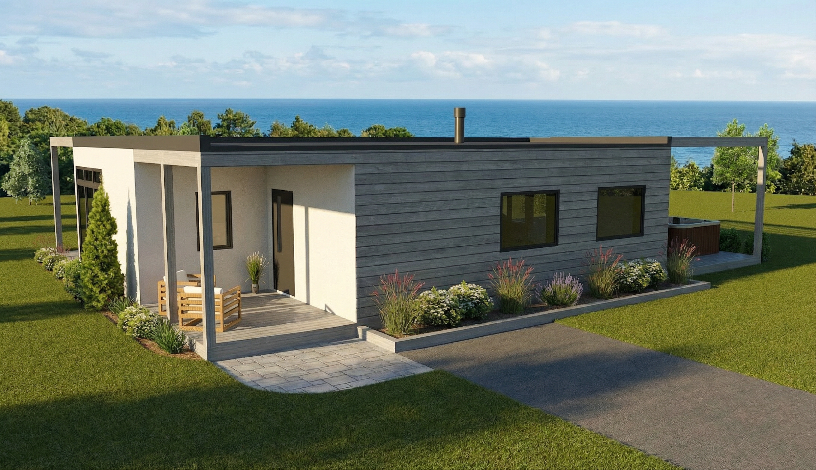 change cladding and soffit and fascia to black add black metal roof