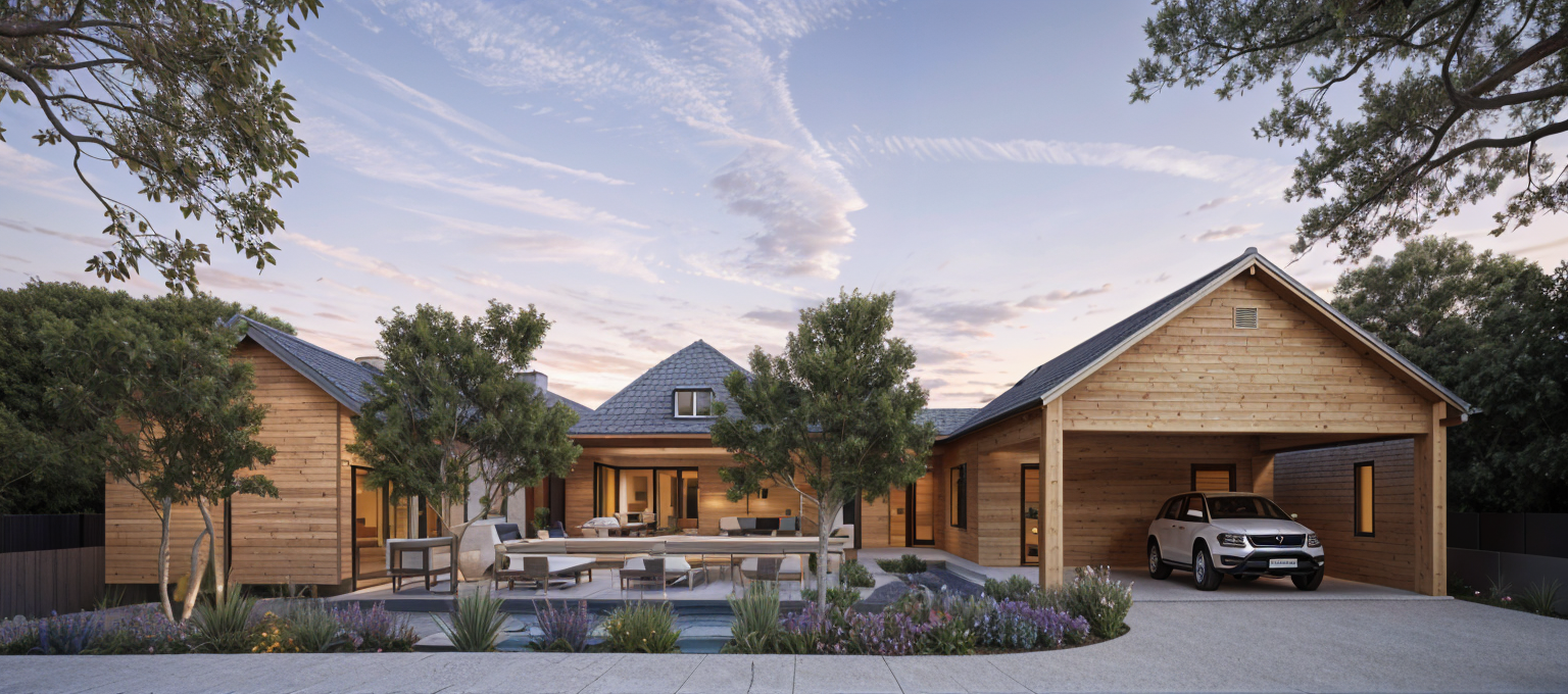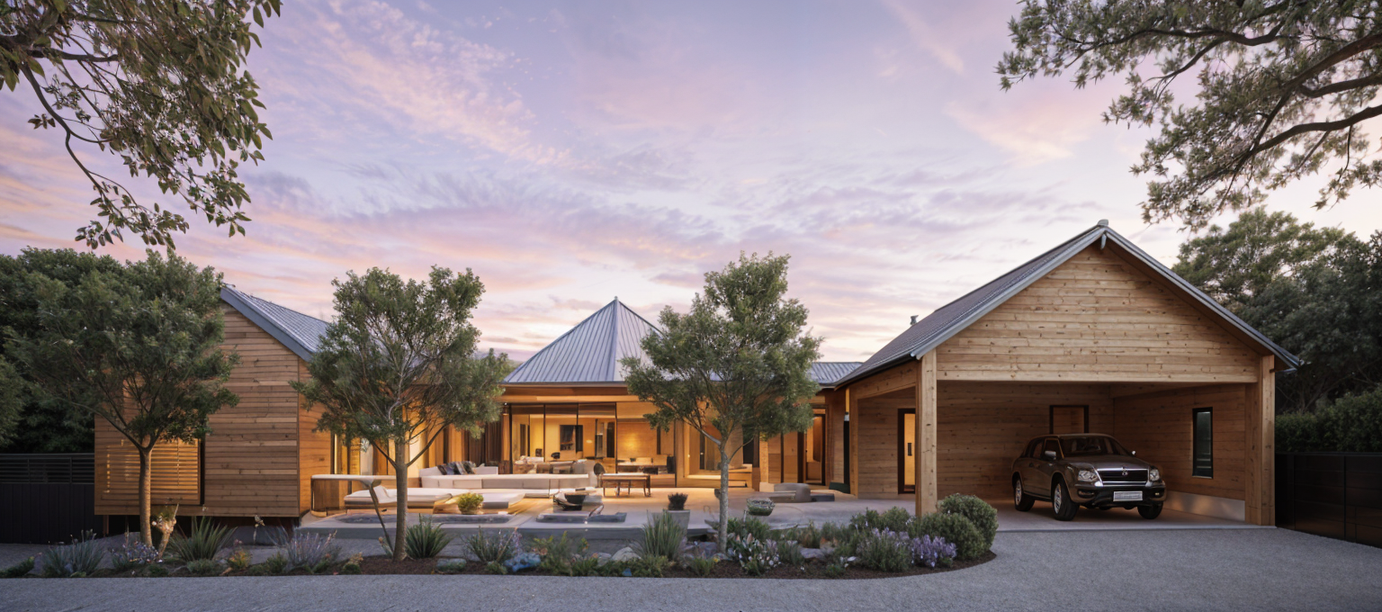 kengo kuma exterior shot in a rural setting at sunset architecture