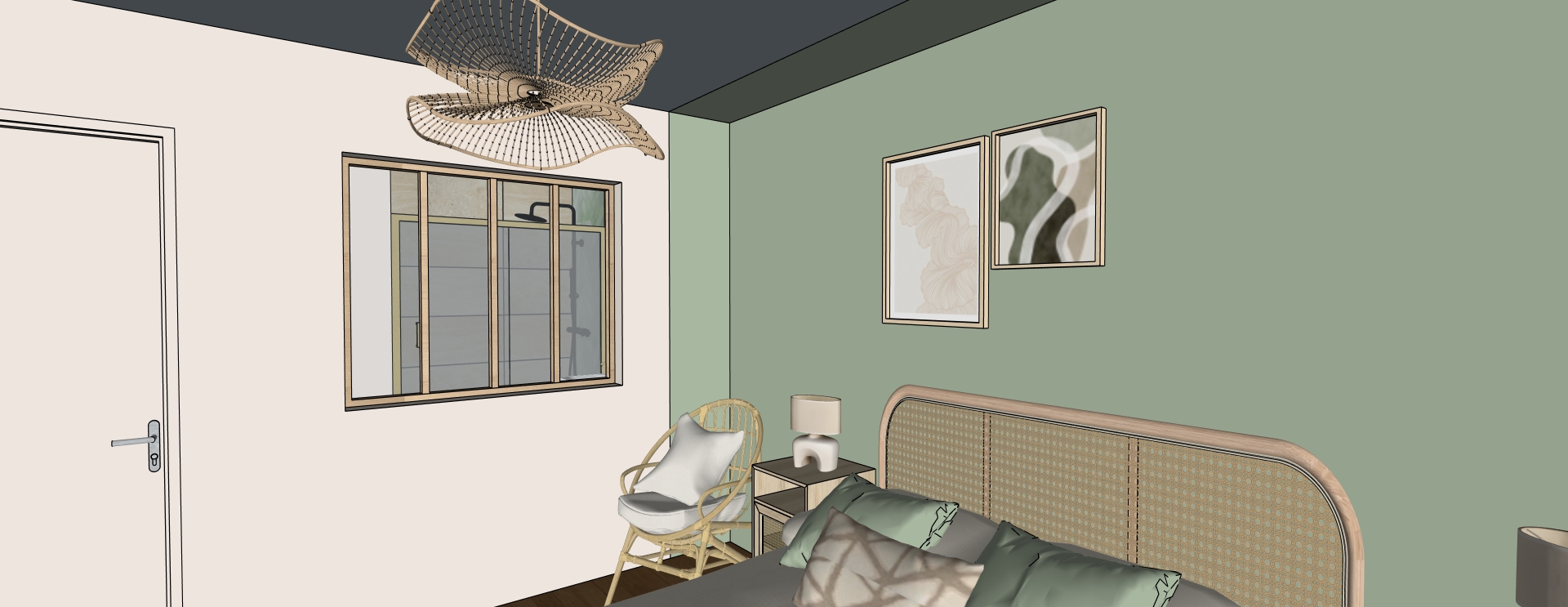 la chambre est tr s mumineuse la lumi re vient de la droite travers la verri re on voit la salle de bain qui est clair e