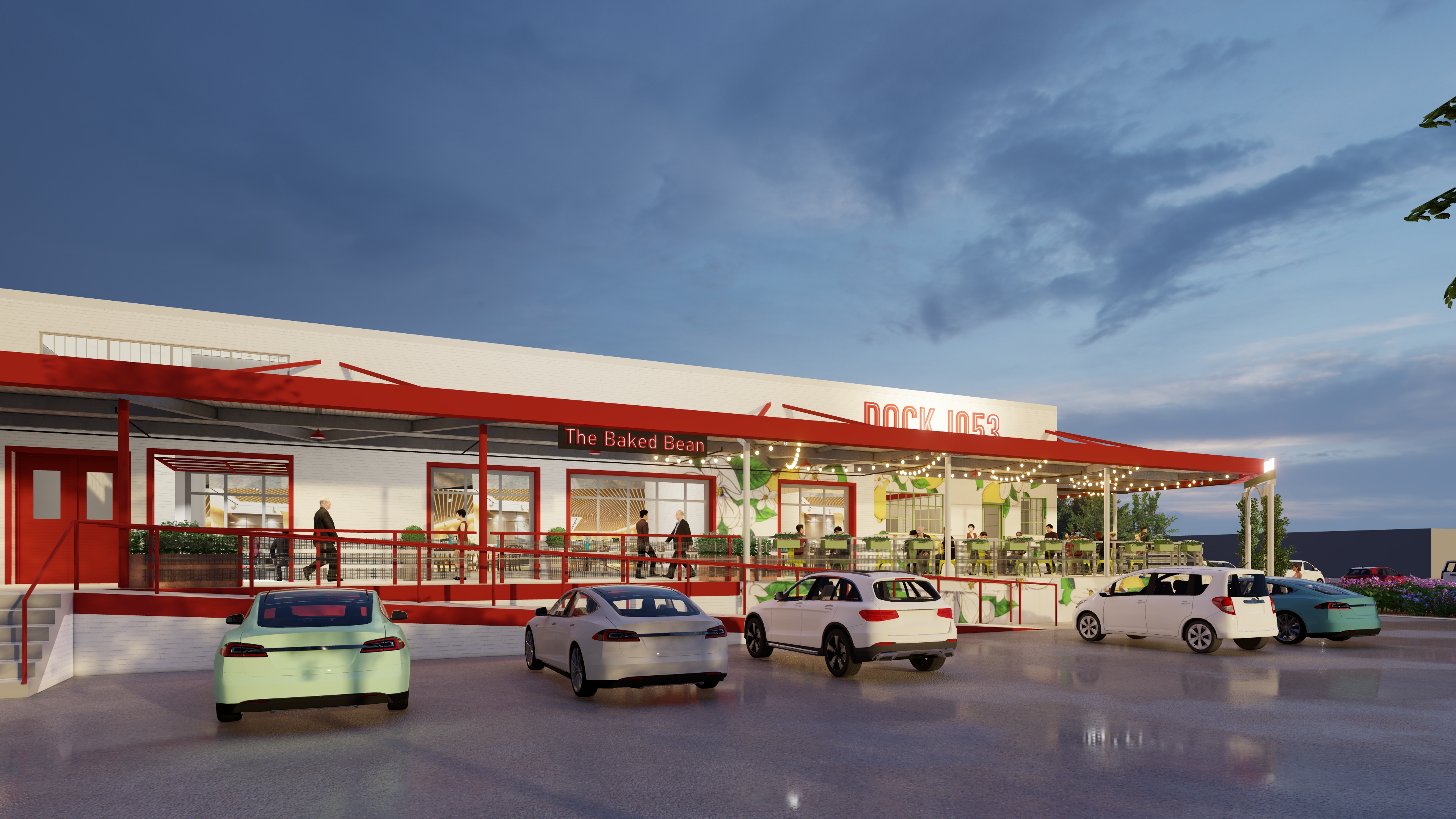 sunset shot of an adaptive reuse retail building