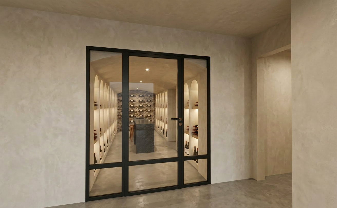 kitchen on the left wall